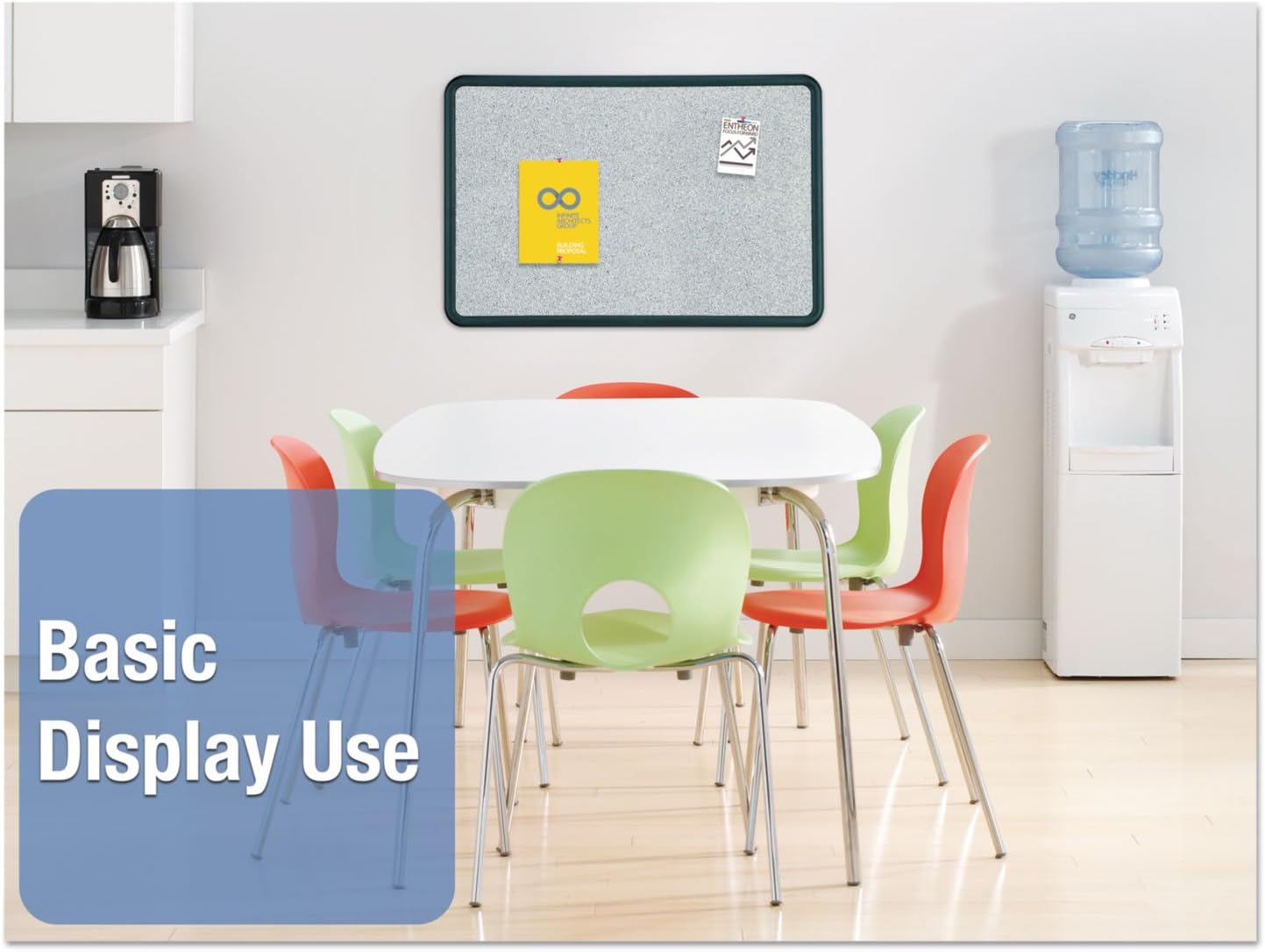 - Durable granite-colored bulletin board surface with matching plastic frame secures documents with push pins