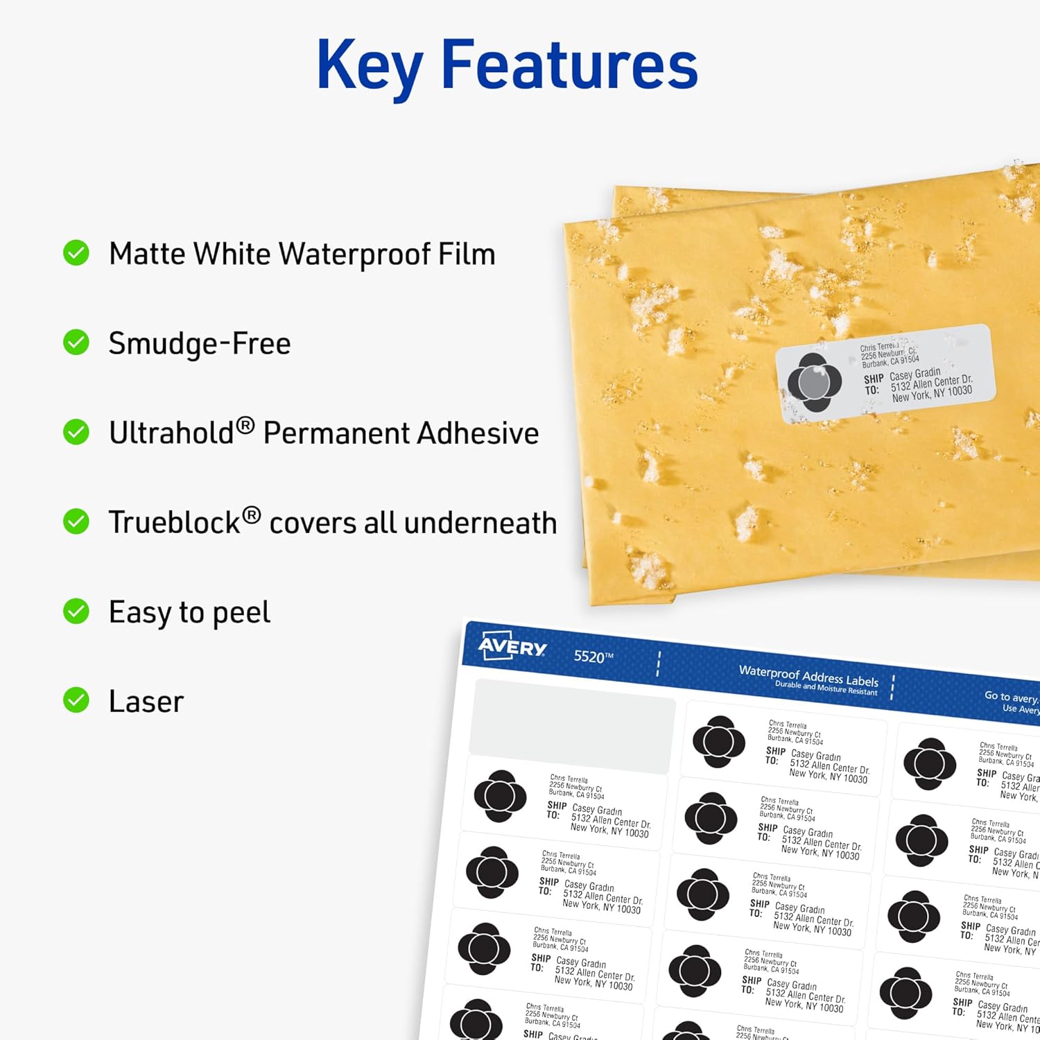- Easy Label Updates: TrueBlock technology on Avery Address Labels enables these sticky labels to cover existing marks thoroughly, allowing you to write over any surface
