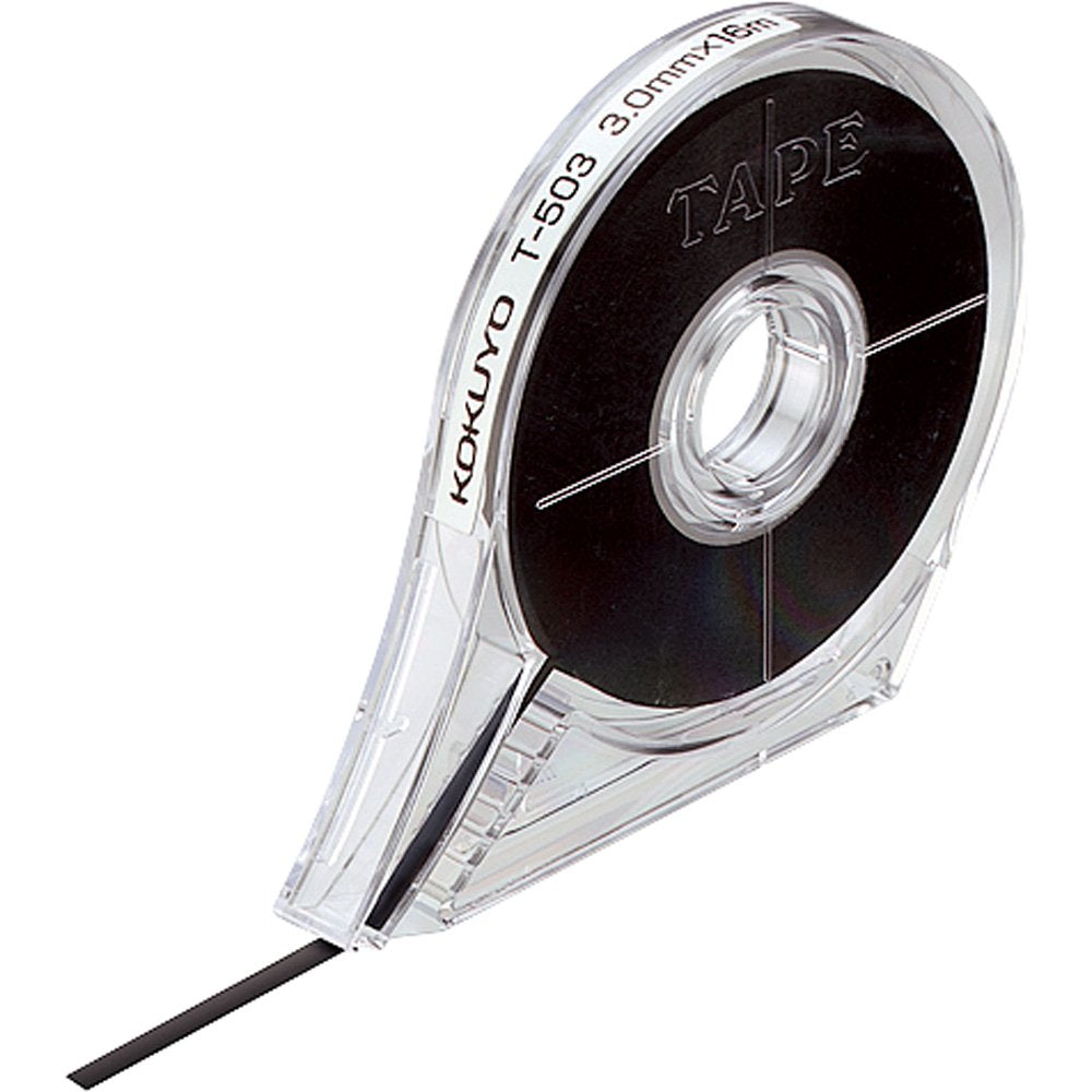 KOKUYO Whiteboard Tape, Width 1/8 Inch (3mm) Graphic Tape with Dispenser, Length 52 Ft (16m) Thin Pinstripe Line Tape Black Dry Erase White Board Accessories for Grid Bar Chart, Japan Import (T-503)