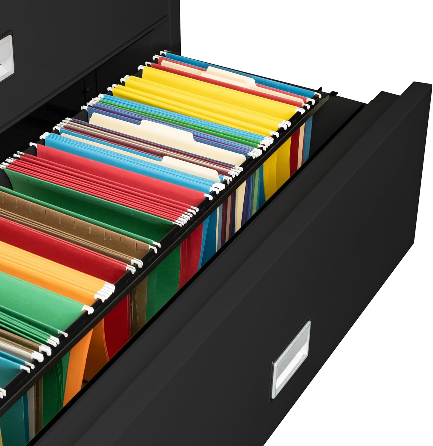 44 inch Wide 4-Drawer Lateral Fireproof File Cabinet – Legal and Letter Size Filing – Key Lock – Water Resistant – Fire Safe and Impact Rated – Black Finish – Model LAT4W44B