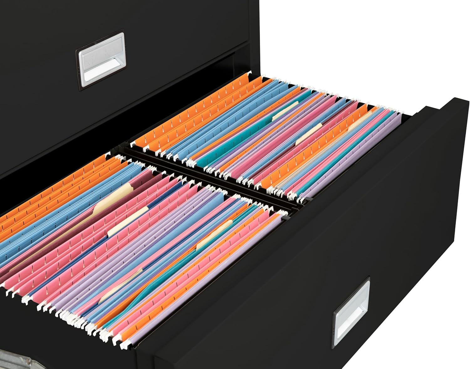 - LEGAL & LETTER SIZE – HANGING FOLDER READY Filing Possibilities per Drawer: 2 Rows of Letter Front-to-Back, 2 Rows of Legal Front-to-Back, Legal from Side-to-Side, Letter from Side-to-Side. All accessories are included to file both legal and letter size documents, either hanging or standard folders from front-to-back or side-to-side. Anti-tip safety mechanism prevents more than one drawer from opening at the same time.