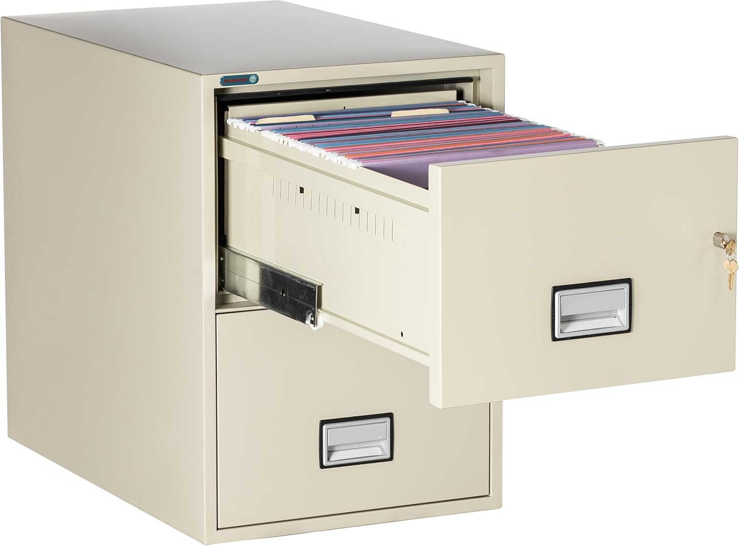 31 inch 2-Drawer Vertical Fireproof File Cabinet – Legal and Letter Size Filing – Key Lock – Water Resistant Seal – Fire and Impact Rated – Putty Finish – Model LGL2W31P
