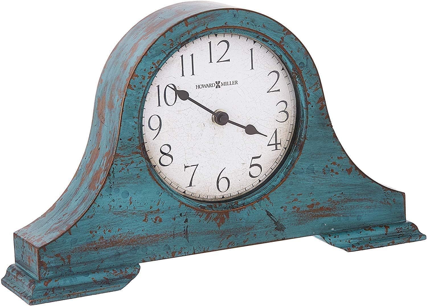 - RUSTIC CHARM: The Tamson mantel clock features a distinctive worn blue finish that adds a touch of rustic elegance to any room. This charming vintage design complements a wide range of decor styles, from modern to traditional. Its weathered look, paired with aged Arabic numerals and black spade hands, makes this timepiece an ideal decorative accent for your home, whether on a mantel, shelf or side table.