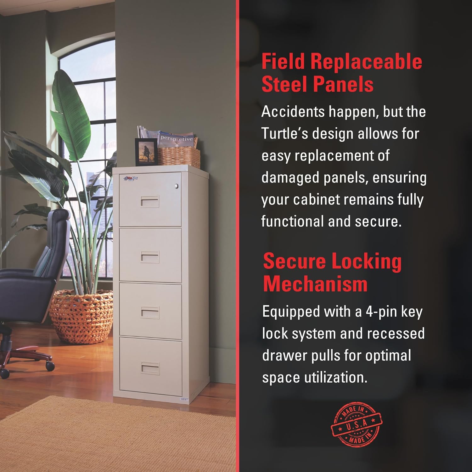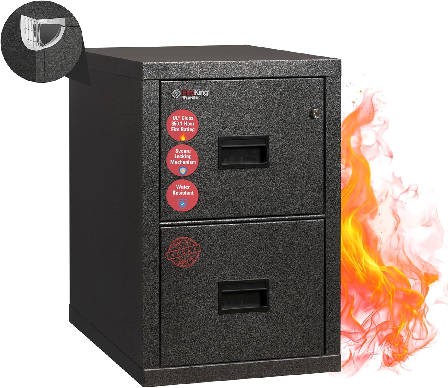 - Special Feature : Fire-Rated, Impact Rated, Lockable, Made in the USA, Water Resistant