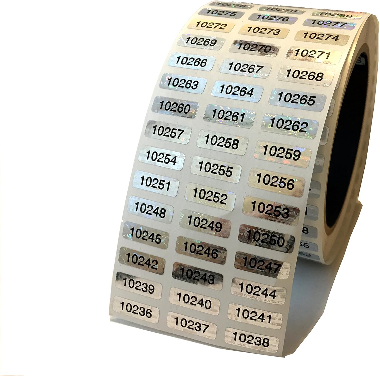 2,000 Silver Hologram Numbered TamperMax Tamper Evident Security Label Holographic Seal Sticker, Size 0.75" x 0.25" (19mm x 6mm).