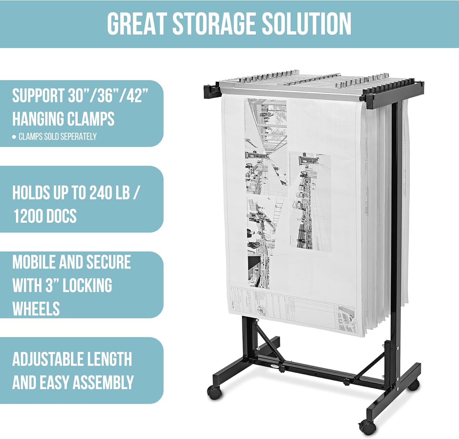 - Mobile & Adjustable: The Adir blue print organizers are mobile and easy to transport, they also have brakes that make them stationary. Our blueprint hanging racks are height & depth adjustable great for storing smaller and larger files with ease.