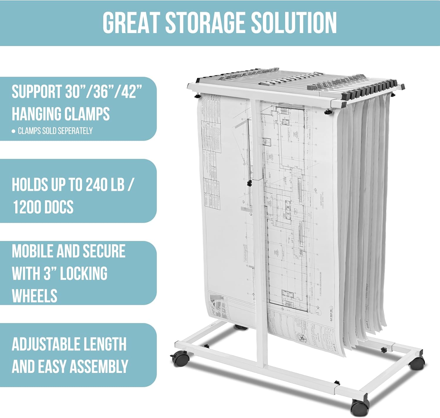 - Sturdy Blueprint Plan Rack: The AdirOffice blueprint storage organizers are crafted from solid steel and capable of holding up to 240 pounds or up to 1200 documents. With the included assembly manual and hardware, you can have this blueprint hanger ready with ease.
