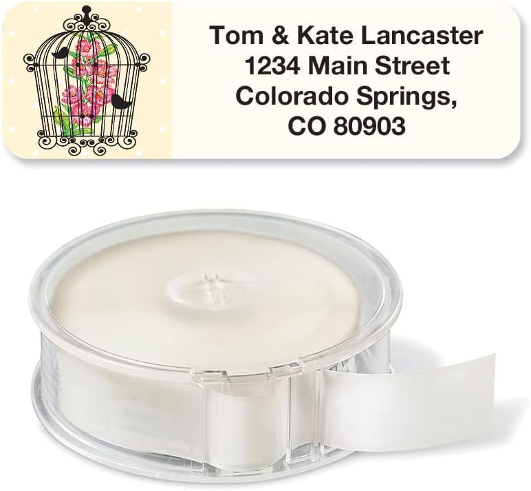 Birdcages Rolled Personalized Return Address Mailing Labels with Dispense, Set of 250, 5 Designs, Small ¾ x 2½ Inch Size, Custom Self-Adhesive Sticker Roll, by Colorful Images