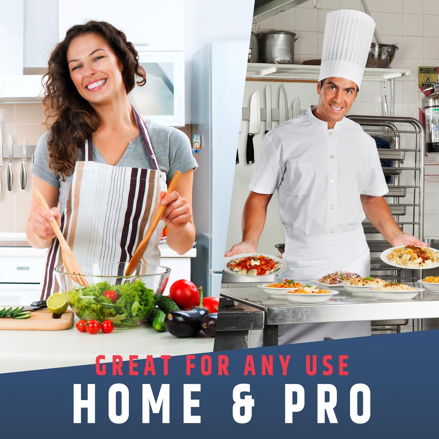 - FIT ANY KNIFE: This knife strip can hold any type of knife firmly without slipping or shifting, making it perfect for Chef's knives, Butcher knives, Cleavers, Bread knives, Carving knives, and more.