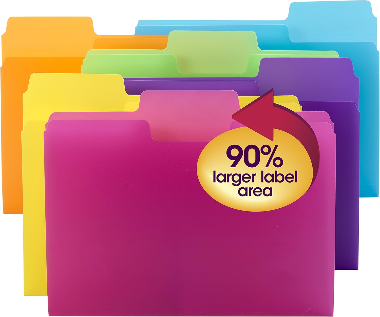 Smead SuperTab Poly Plastic File Folders for Documents, Set of 18 Plastic Folders, 1/3-Cut Tabs, File Folders Letter Size, Assorted Bright Colors, Office Supplies, School Supplies (10515)