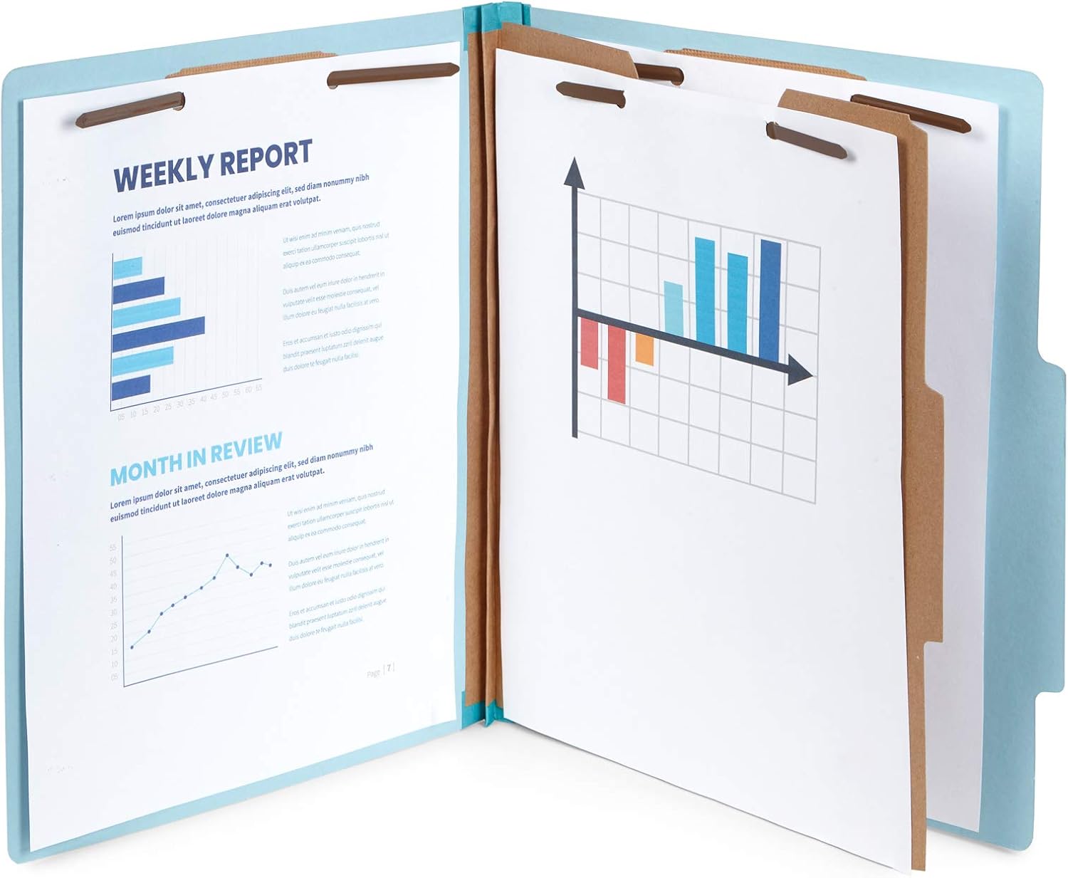 - Perfect for storing over 100 files, employee folders, or larger bulky files with our durable 6 section file folders with thick 25pt blue pressboard, 17pt kraft paper divider, and strong 2’’ Tyvek expansion for our multi section folder