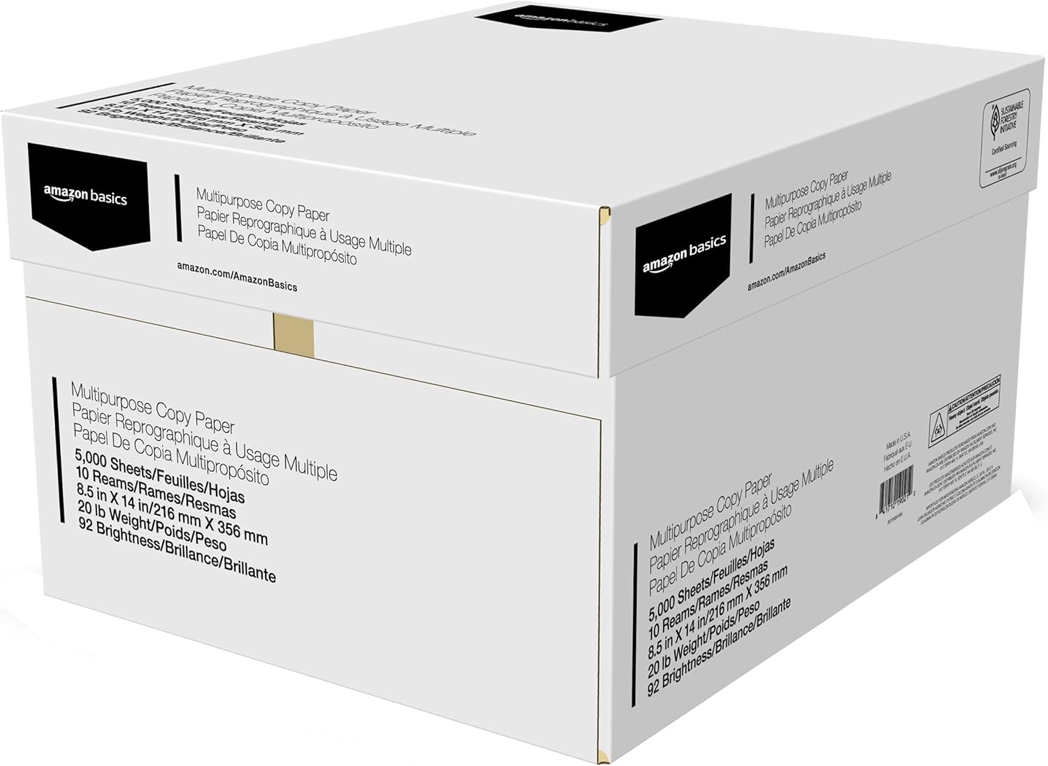 Amazon Basics Multipurpose Copy Printer Paper, 20 lb, 8.5 x 14 Inches, 10 Reams (5,000 Sheets), 92 Bright, White