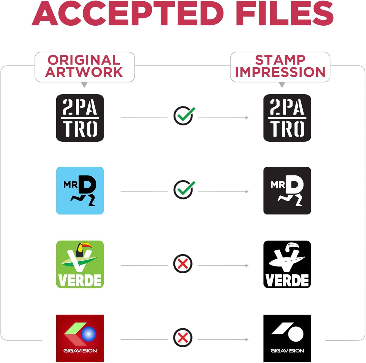 - Ideal for large oversized stamping. Impressions are made by rocking the stamp on the surface.