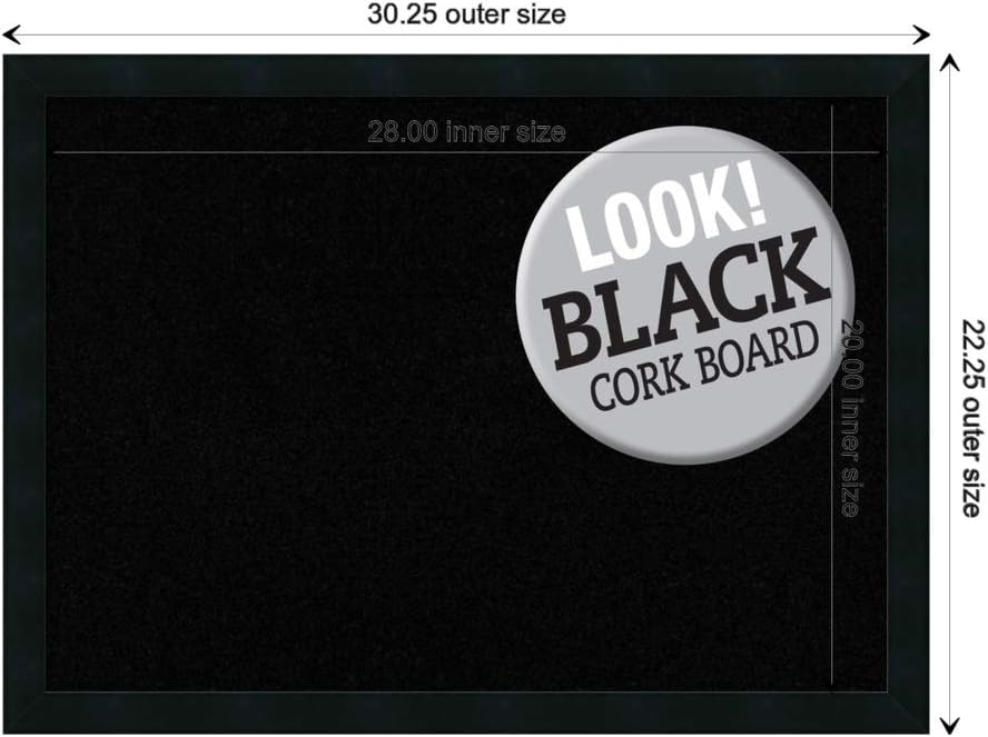 Amanti Art Black Cork Board for Wall, 22x30 Vision Board with Black Wood Frame, Medium Corkboard Office Decor for Home Organization, Modern Contemporary Corkboard Pinboard to display items for home