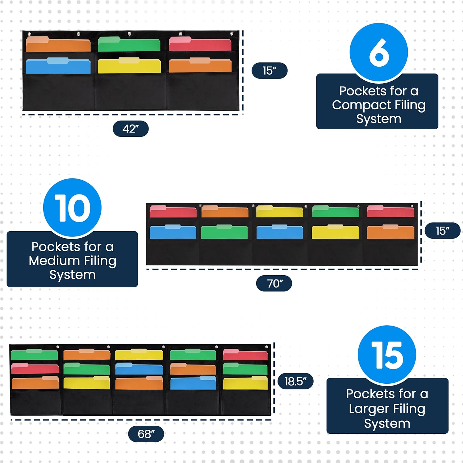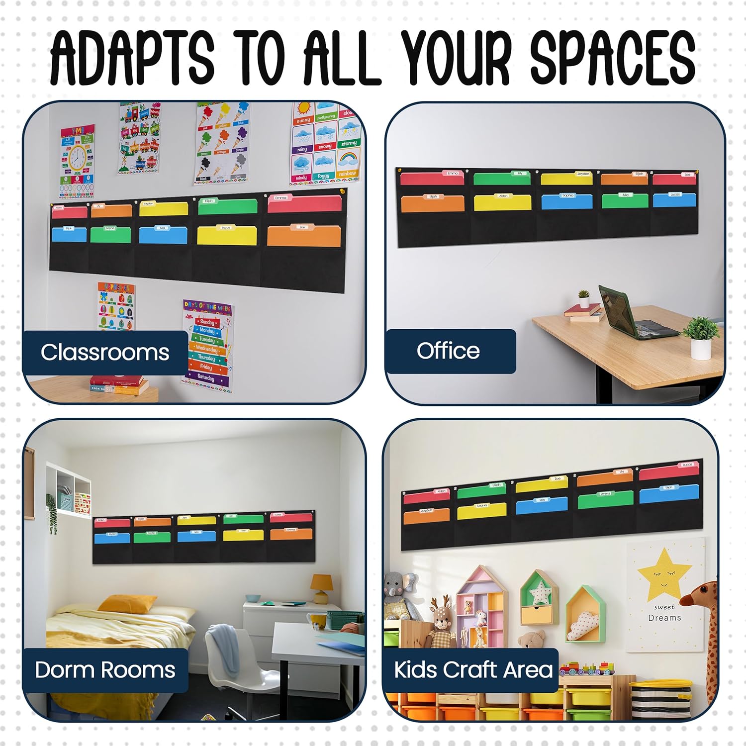 - Built to Last - Ensure your files stay organized for the long haul with our wall hanging file folders organizer. Crafted from durable polyester fabric, our pocket chart is designed for repeated, long-lasting use.