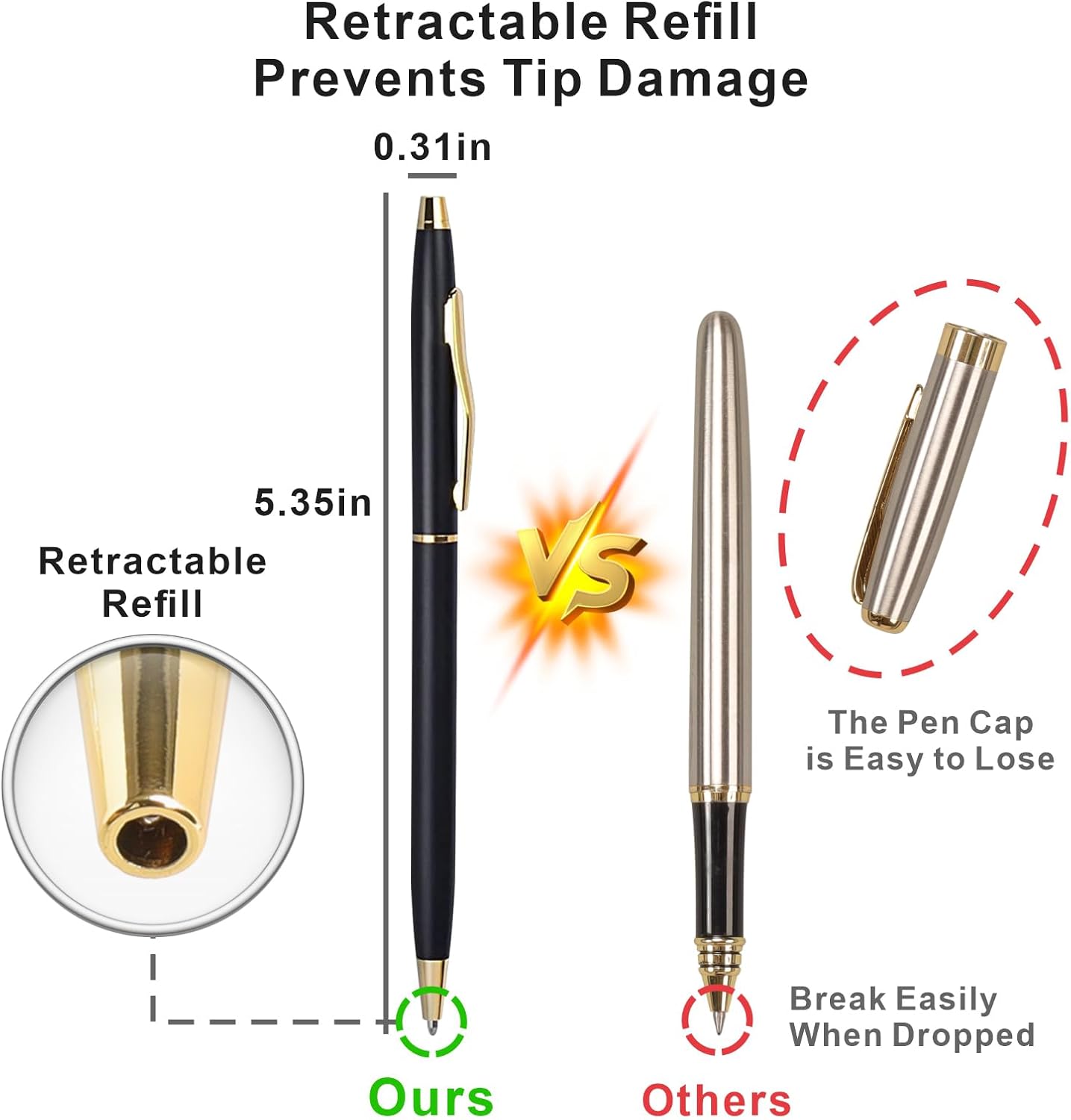 - Classic Black Pens: The black ballpoint pens measure 5.35" (H) with a sleek 0.31" (D) barrel; Ideal for men, executives, flight attendants, police officers, students, business meeting, office, college, wedding, or everyday professional use as uniform pen, guestbook pen, wedding pen, etc