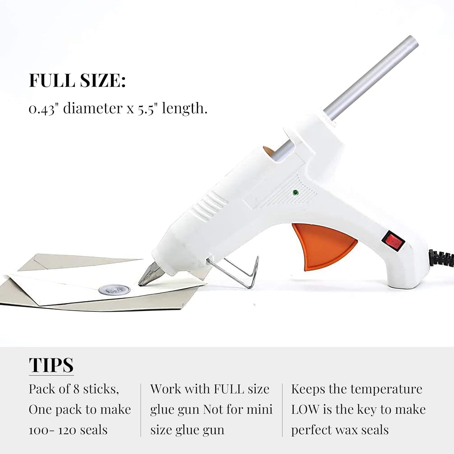 - PACKAGE INCLUDE - Pack of 8 sticks. Each stick can approx. make 12-15 seals. One pack to make 100- 120 seals. Size: 0.43” diameter x 5.5” length.