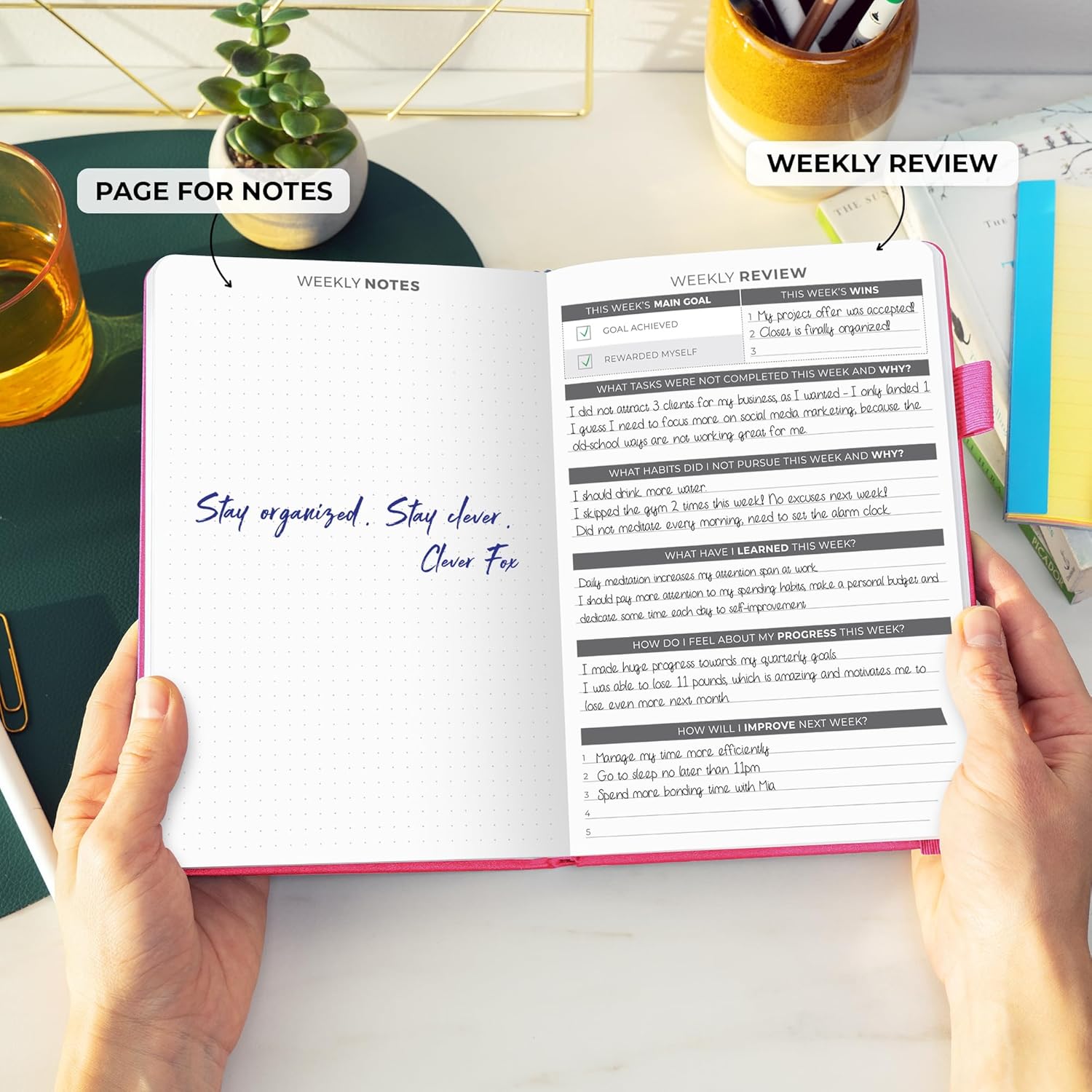 Clever Fox Daily Planner – Undated Planning Notebook with Hourly Schedule & To-Do List – Personal Day Task & Work Organizer, 6 Months (Hot Pink)