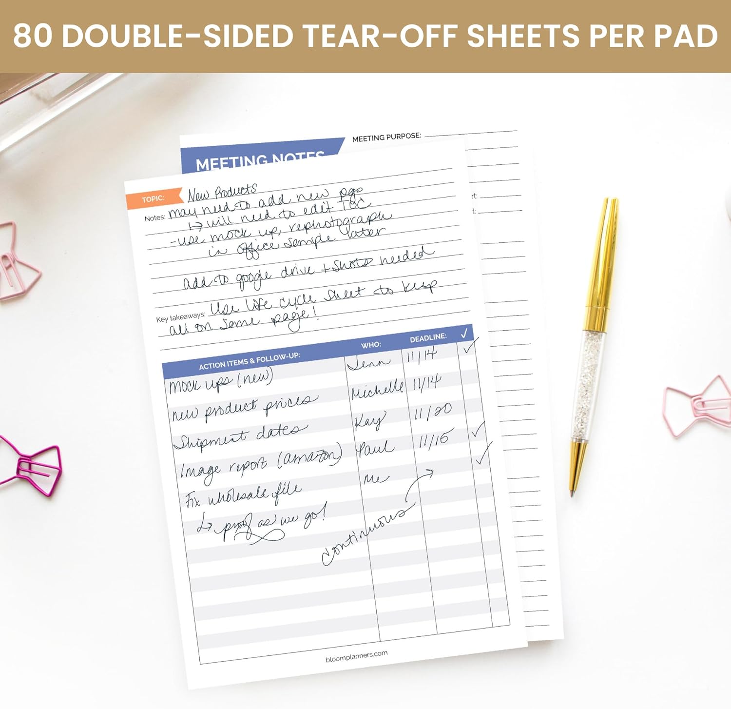 bloom daily planners 6" x 9" Double Sided Meeting Notes Planning Pad for Work Organization - Topics, Takeaways, Action Items & Follow-Ups - Undated Meeting Agenda Notepad