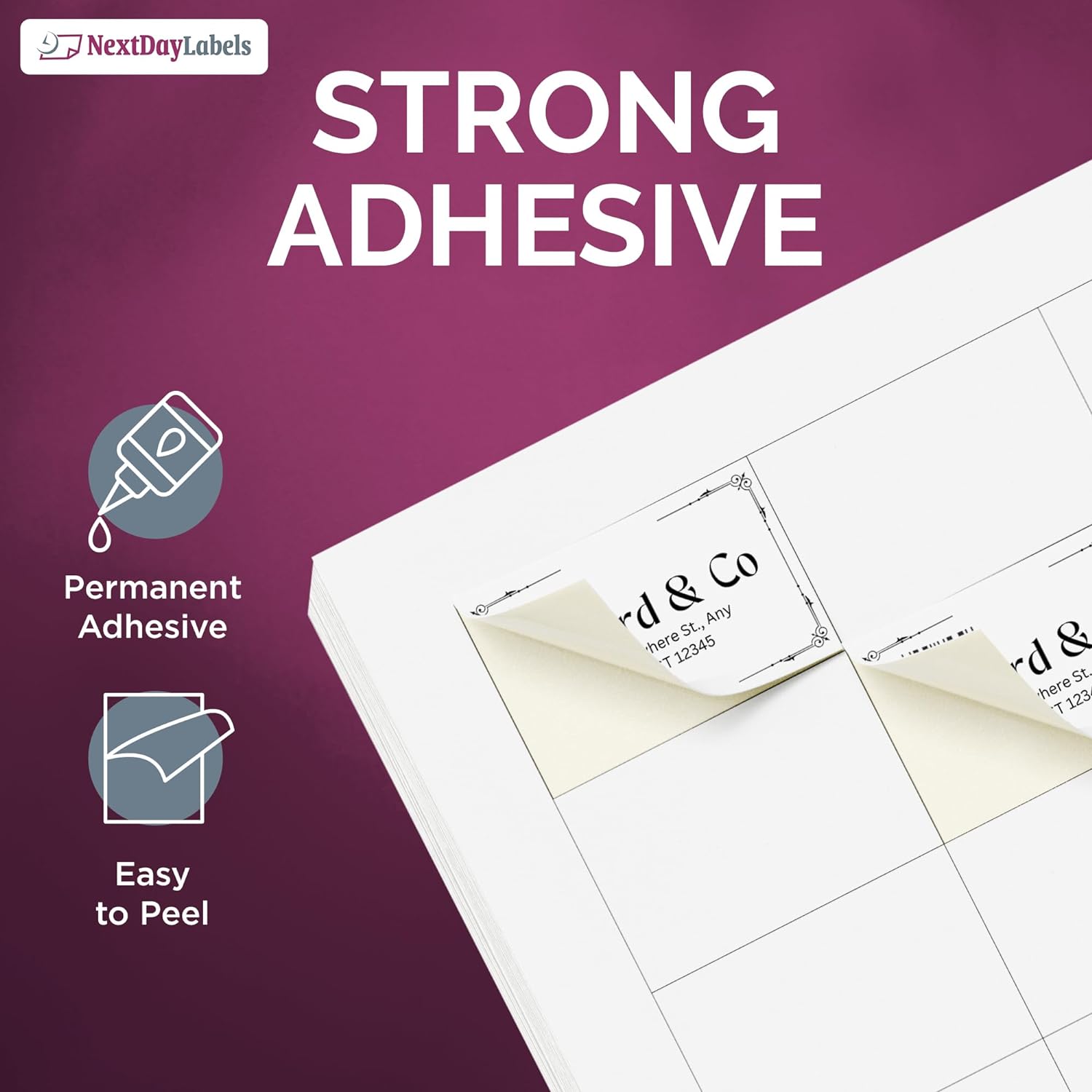 - STRONG PERMANENT ADHESIVE - Bright matte white labels stickers with a strong permanent adhesive so they attach firmly to boxes, pallets, cardboard, envelopes, paper, glass, plastic, metal, tin, and more. Will work with all Laser, Inkjet, Copy Machines, and Offset Printers.