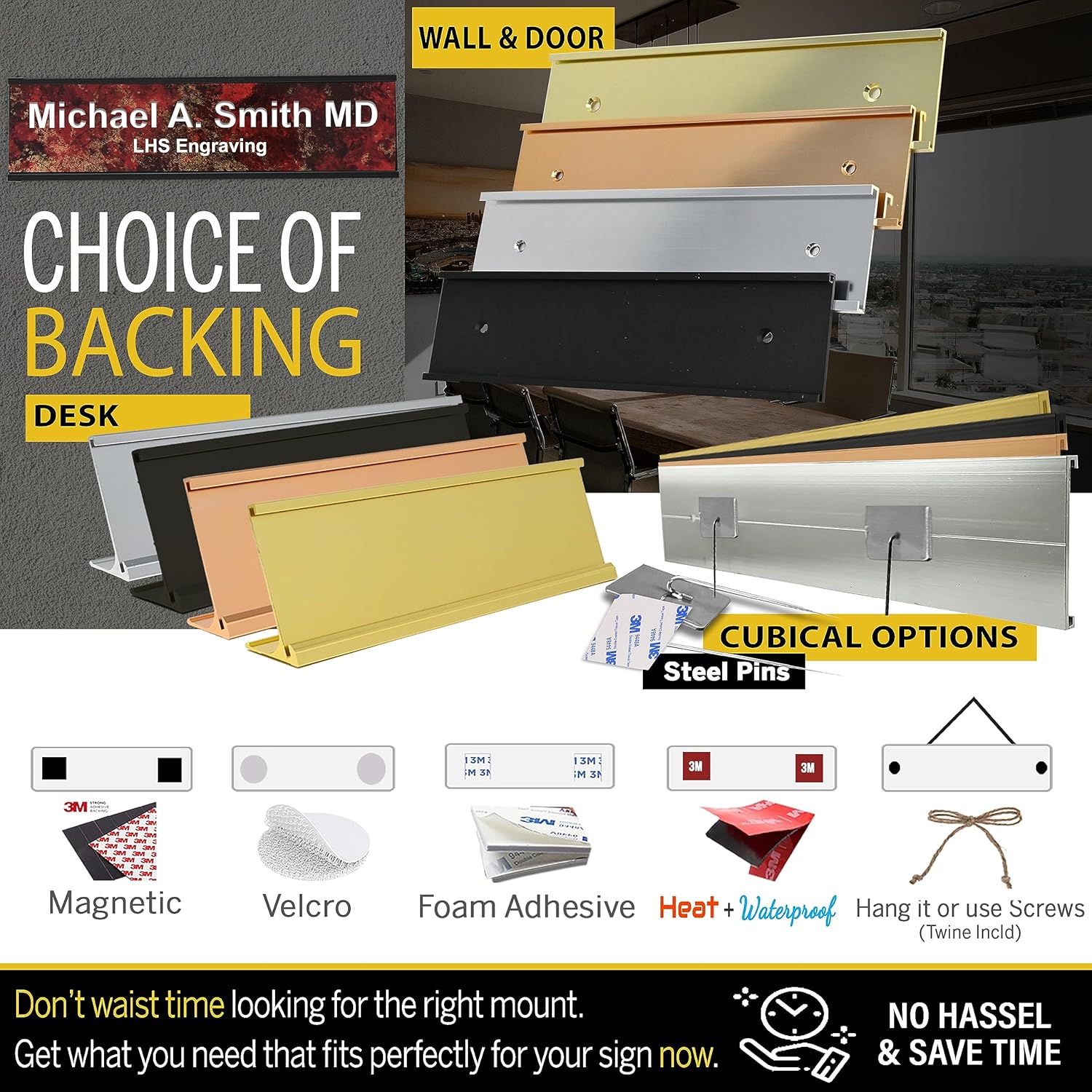 - π‘ Click Personalize: Add 3 lines of text | Option to add a desk, wall or a door holder or choose adhesive, hanging, cubicle pins, or all weather adhesive option