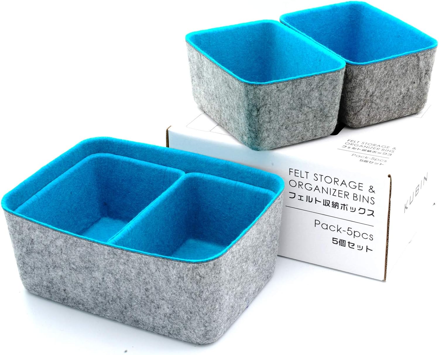 Welaxy office Drawer organizers bins Deep draw organiser Felt storage bin drawers Desk draw dividers boxes for toys makeup jewelery rolled ties organizing 5 pack (Turquoise)