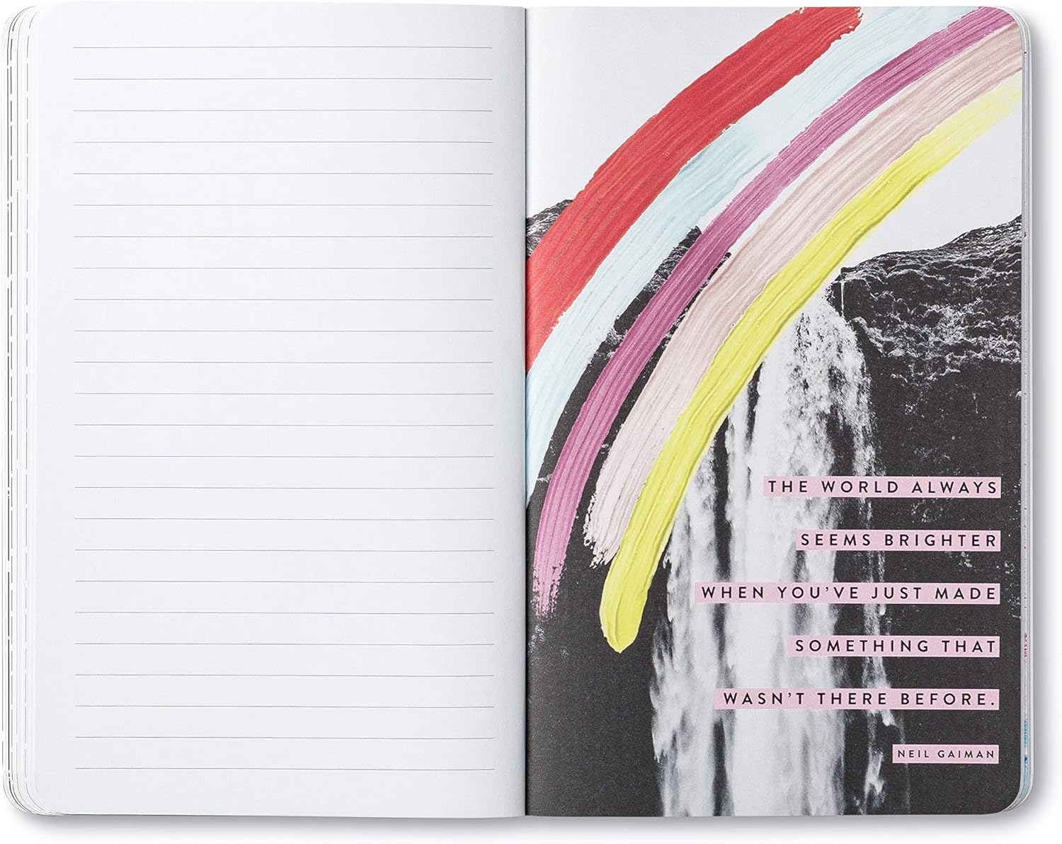 - MAKE A STATEMENT: This designer softcover journal features bold sentiments, modern typography, and artwork by contemporary designers and illustrators. Each themed blank notebook includes 8 breakout pages with inspiring quotes and uplifting artwork that match the theme. Tuck a notebook into a backpack for convenient note-taking at school, an office, a coffee shop, or a conference. They’re great to take on the go for everyday journaling and doodling.