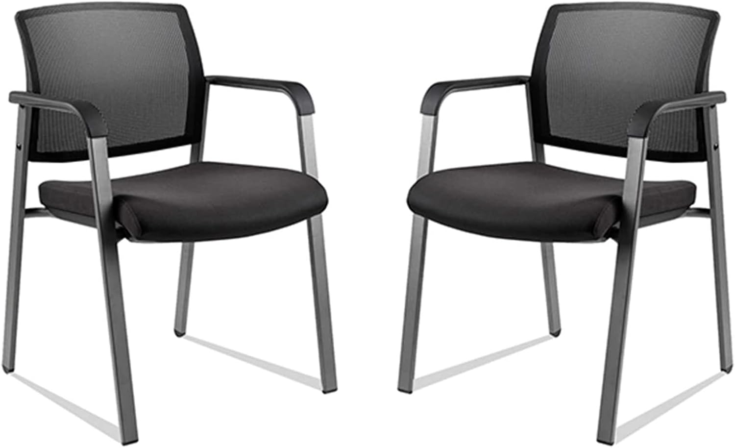 CLATINA Mesh Back Stacking Arm Chairs with Upholstered Fabric Seat and Ergonomic Lumbar Support for Office School Church Guest Reception Black 2 Pack Set