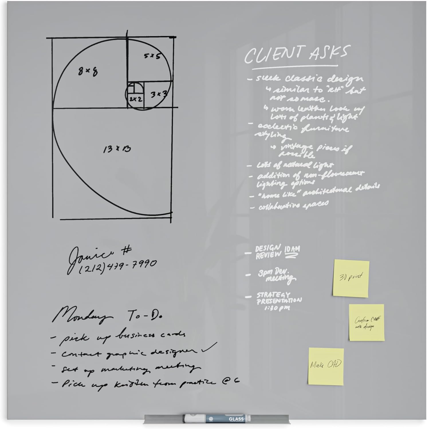 U Brands Glass Dry Erase Board, 36" x 36", 3'x3', Gray Surface, Frameless, Includes Marker