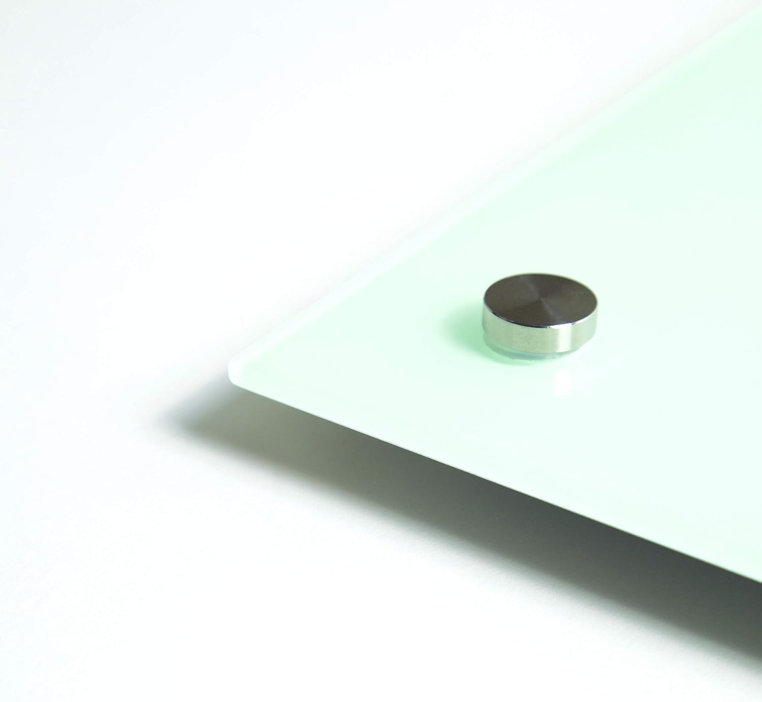 - Magnetic glass surface duals as a bulletin board enabling the use of rare earth magnets to pin notes, memos and more. Glass whiteboard's magnetic feature will only work with strong neodymium magnets