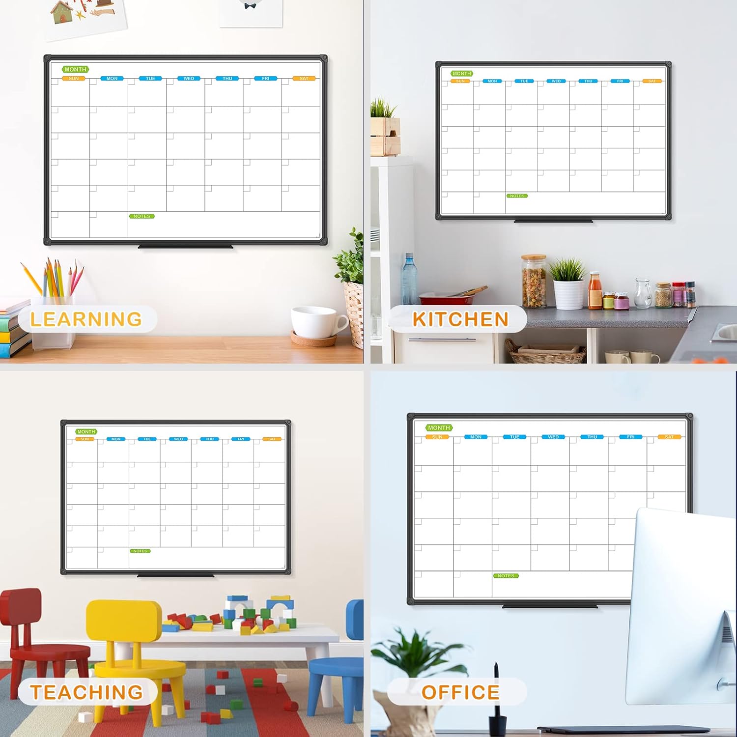 - SMOOTH & ROBUST DRY ERASE PERFORMANCE: Smooth Scratch-Resistant surfaces, enjoy writing message notes on 35.8" x 24" calendar board, easily dry wipe with all dry-erase markers.