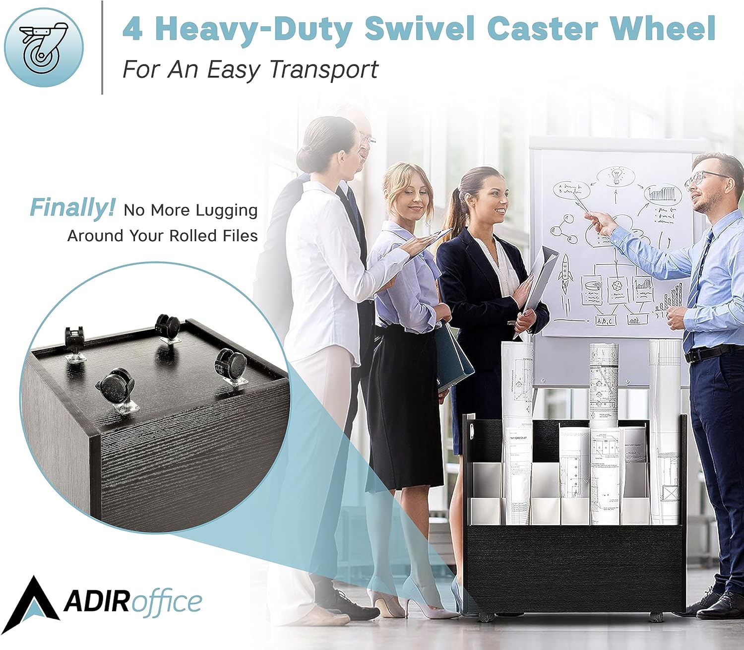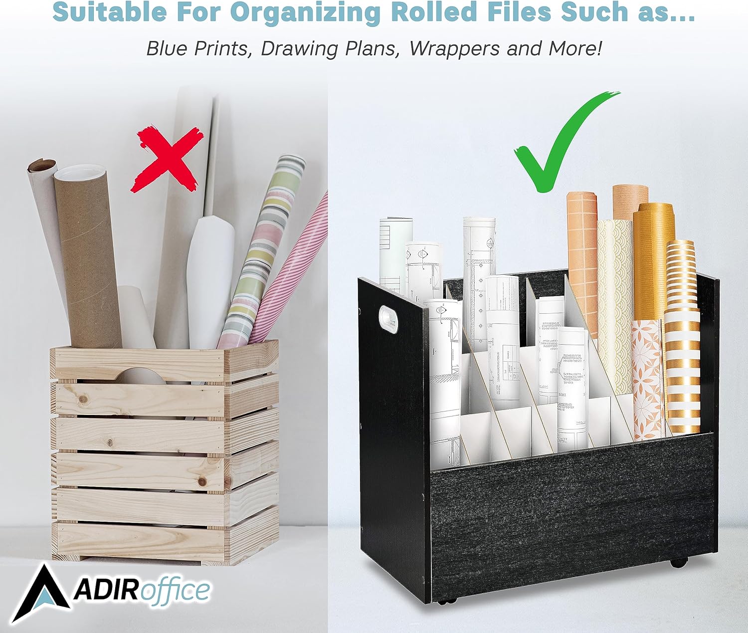 - Versatile use: Adir’s rolled files organizer serves multiple purposes. It can be used as a blueprint storage cabinet, rolled poster storage, vinyl roll holder, map storage cart, architectural plan storage, and more.