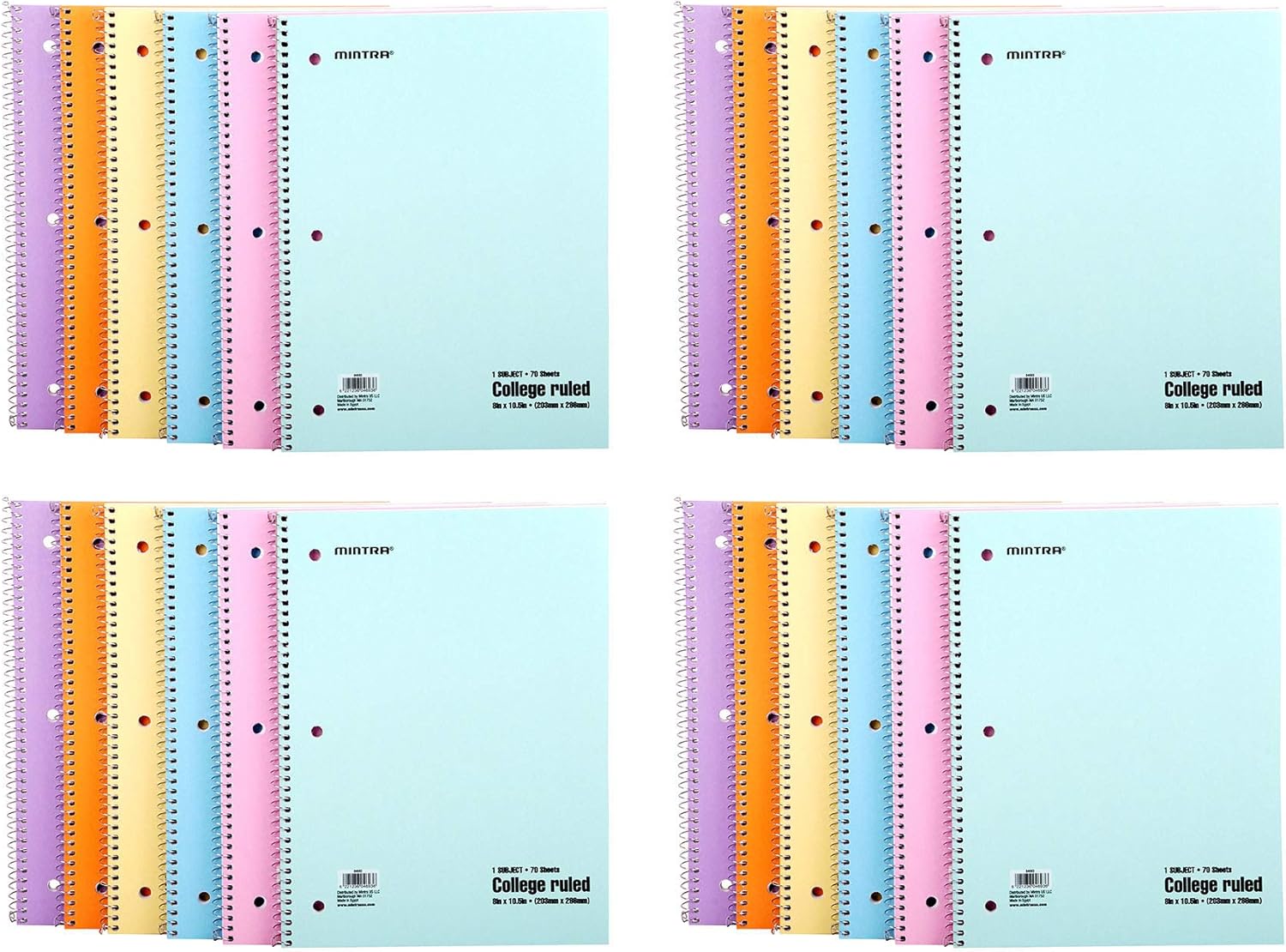 Mintra Office Spiral Notebooks (Pastel - College Ruled, 24pk (4-6pks))