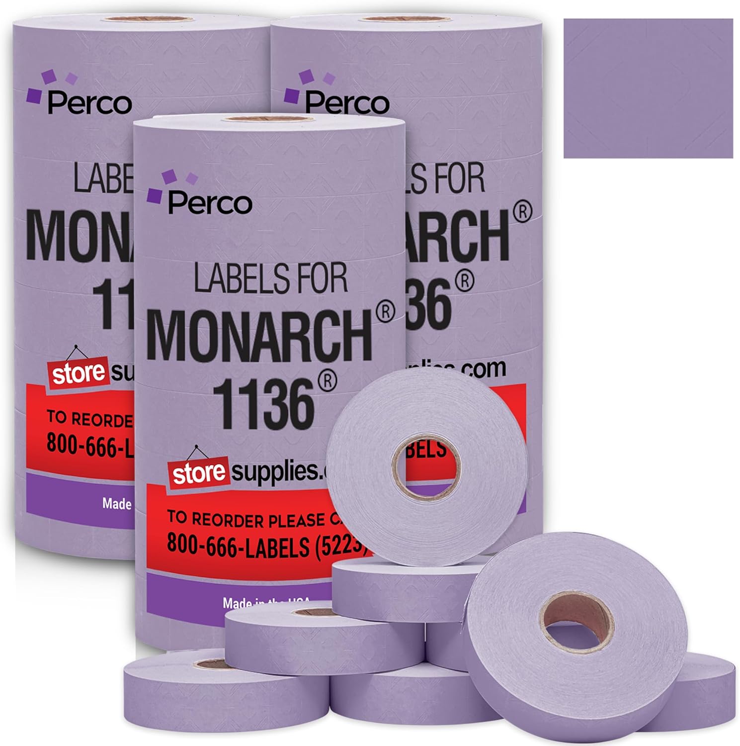 Perco Lavender Pricing Labels for Monarch 1136 Price Gun - 3 Sleeves, 24 Rolls Value Pack - 42,000 Price Marking Labels - with Ink Rolls Included