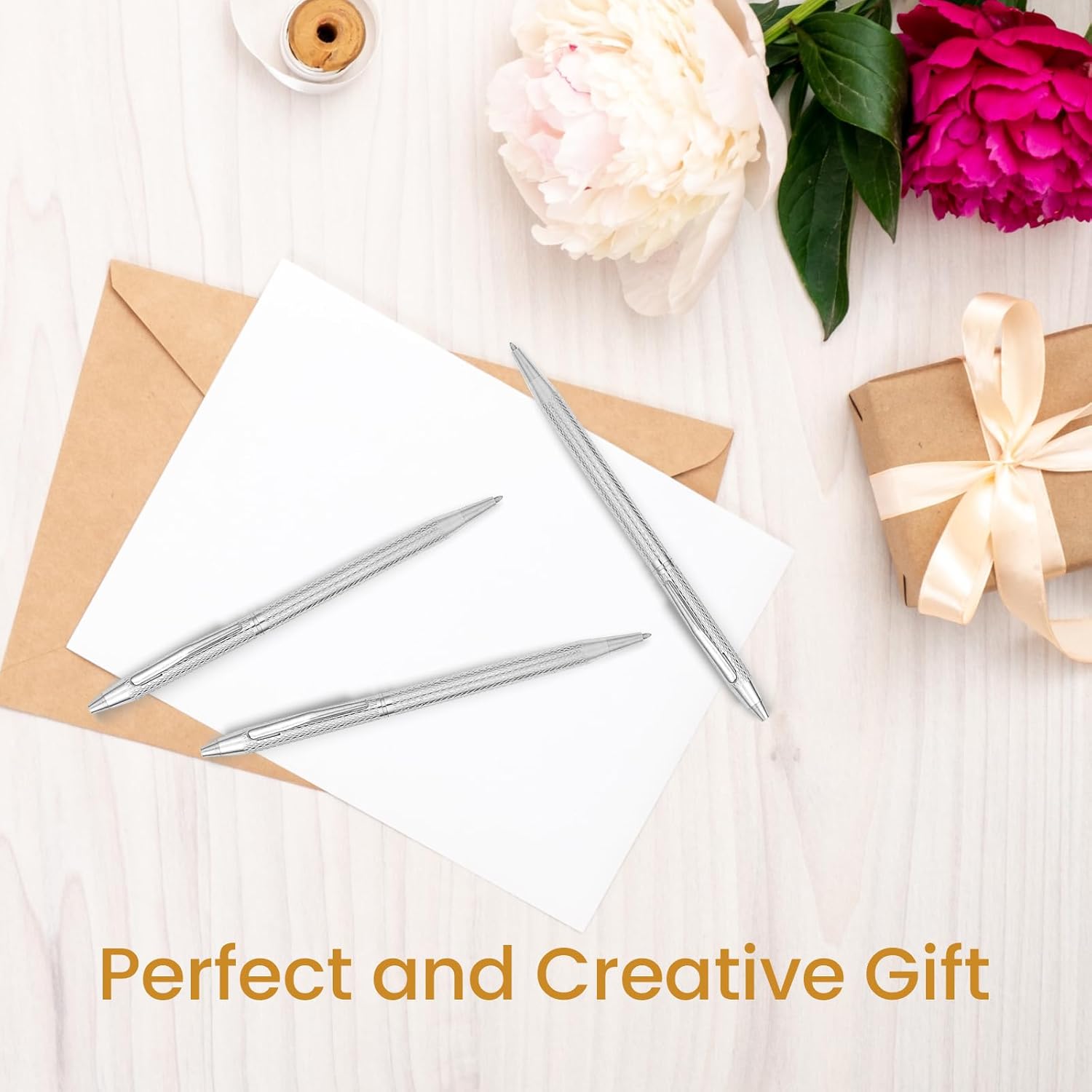 - Premium Silver Pens: Elevate your style with the black ink pens featuring a sleek metal body in a stunning silver finish; Perfect for women, flight attendants, police officers as uniform pen, or wedding guest books as guest pen; Measures 5.2" long with a slim 0.3" diameter for a professional look
