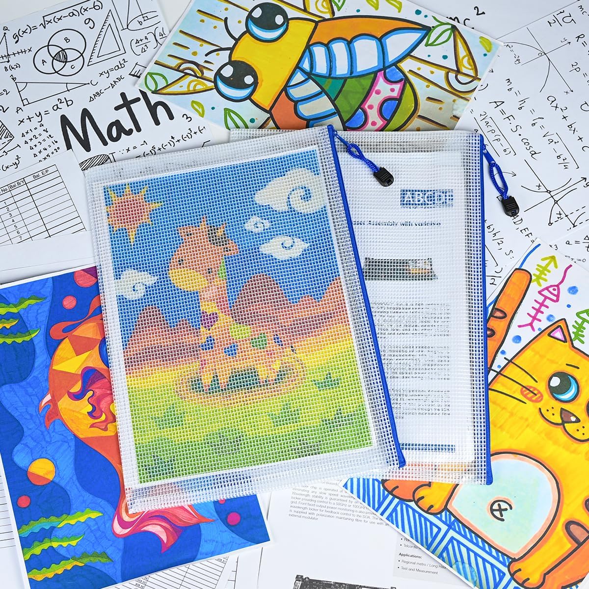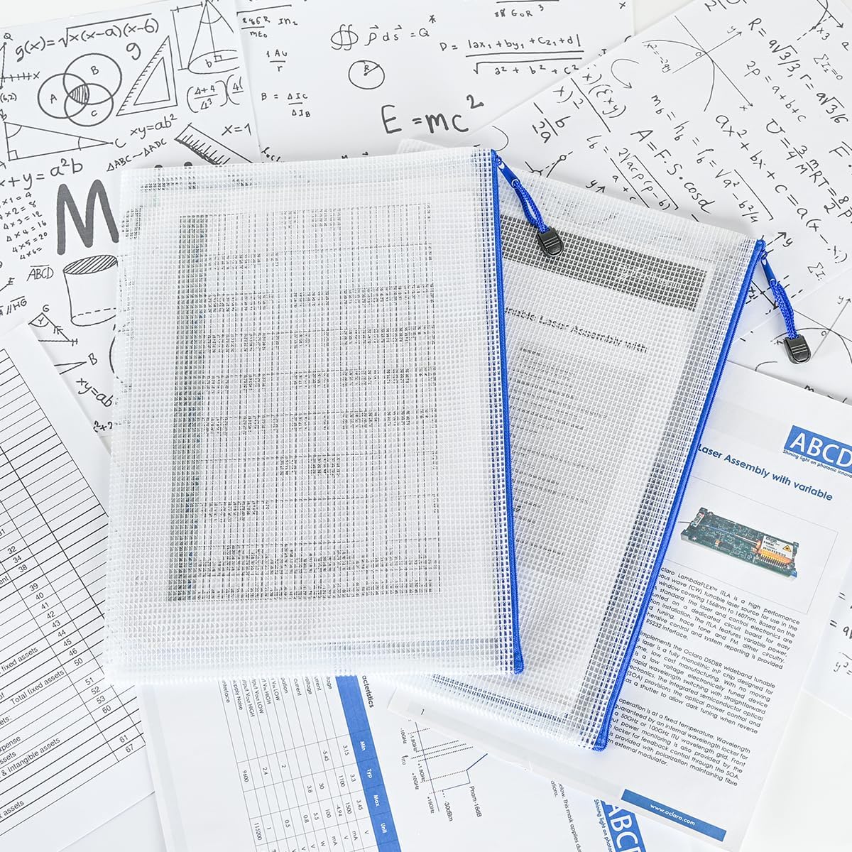 AUSTARK 10 Pcs Zipper File Bags, Waterproof Plastic Mesh Pouch for Office School, Board Game Storage Bags (A4 Size 13.4''x9.4'', White and Blue)