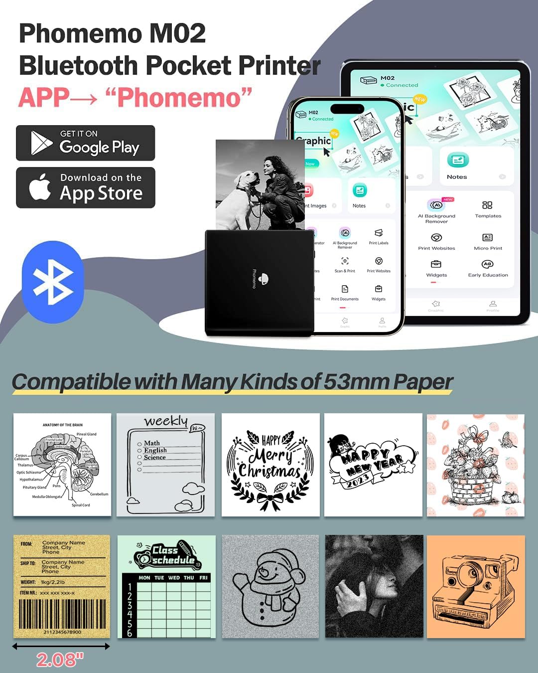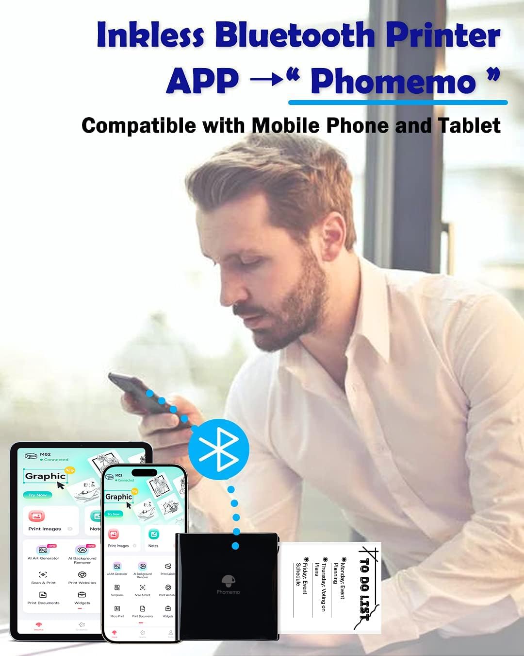 - Bluetooth Thermal Printer- Bluetooth 4.0 connection. System for Android 7.0 and iOS 13.0 or above. Phomemo M02 pocket printer is an inkless printer, you donβt need to buy any ink or toner. Portable mini printer help you save time