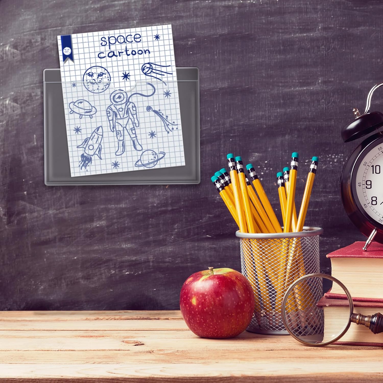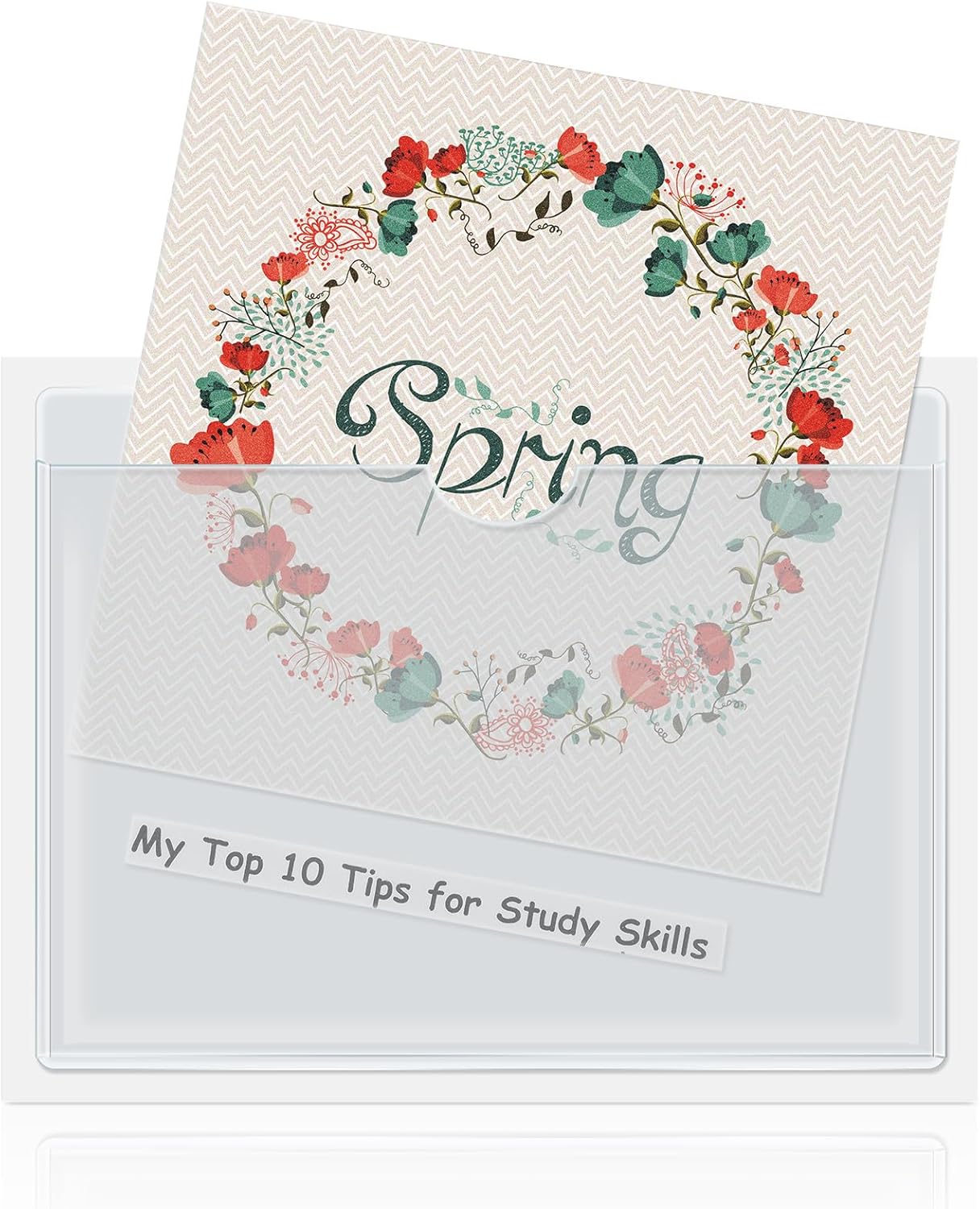 - Design Characteristics: with the top-open design, you could insert and remove a card without issues; The back has a peel-away liner, Put your cards into the card pocket, tear off the back sticker, you can stick the self adhesive pockets at your desk, classroom and other places; The semicircle cutout allow you grasp the card easily