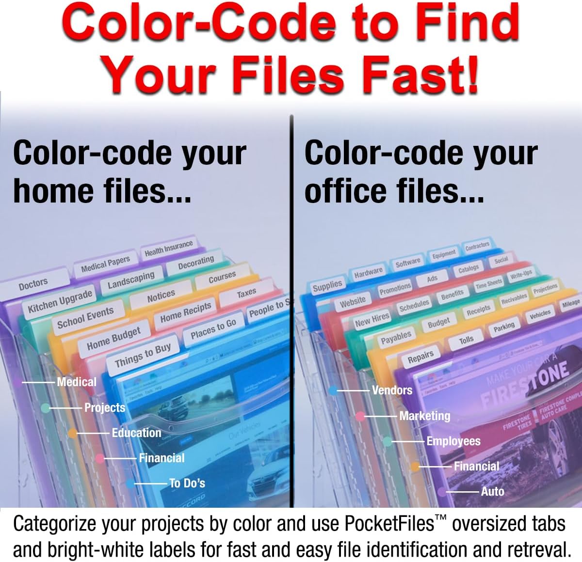 - NEVER BUY MANILA FILE FOLDERS AGAIN - Our StationMate complete filing system includes 18, 3rd-cut heavy duty, translucent PocketFile Project Files in assorted colors ($ 14.32 value). Our PocketFiles are 5-Star rated on Amazon because of their functionality and durability.