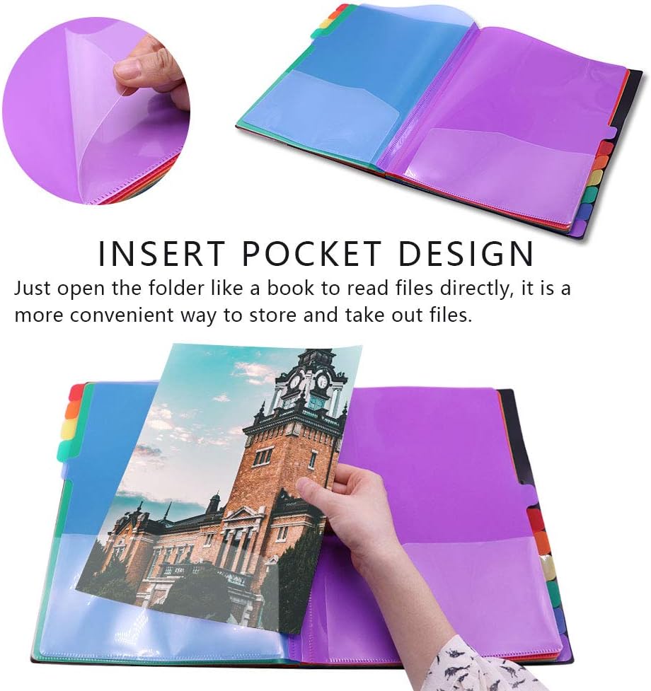 - ★Expandable&easily access: Different from other file folders, this expandable file folder helps to save more space in your crowded desk; Every color page with double pocket, it means 24 pockects in the folder. The insert bag design, makes easily to access to all files.