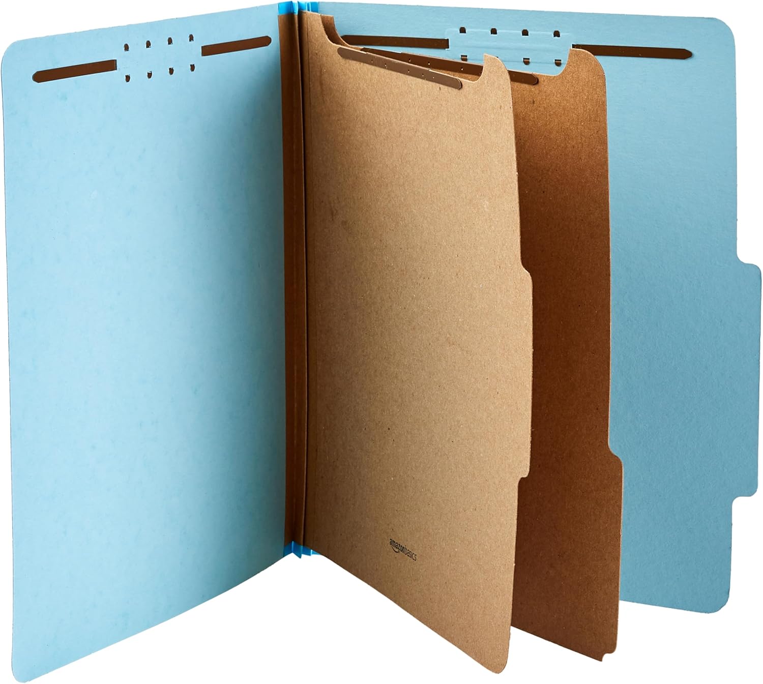 Amazon Basics Classification Folder with Prongs, 100% Recycled, 2 Dividers, 2" Embedded, 12.17 x 10.39 inch (Letter) Size, Light Blue, 10 Count per Box