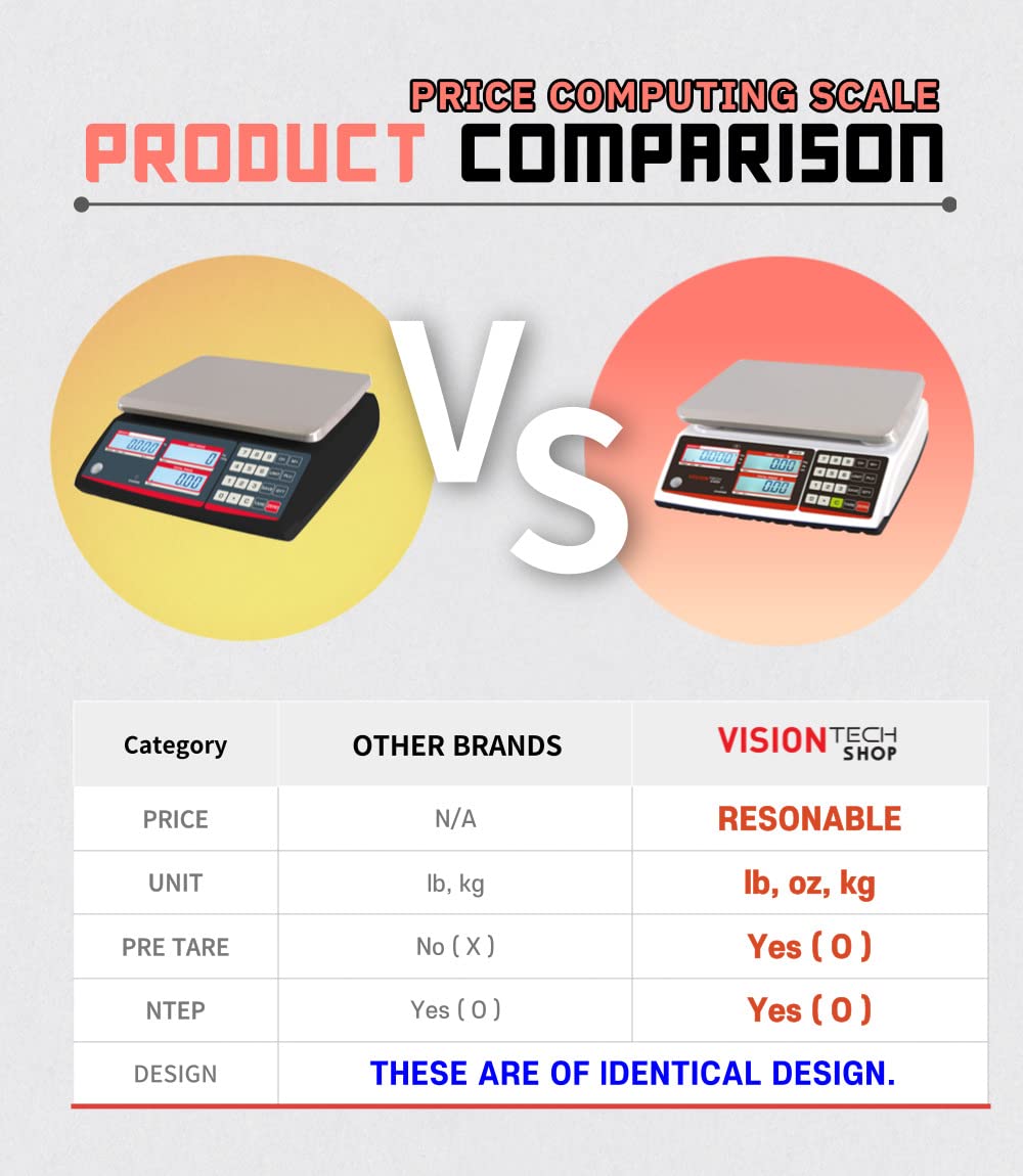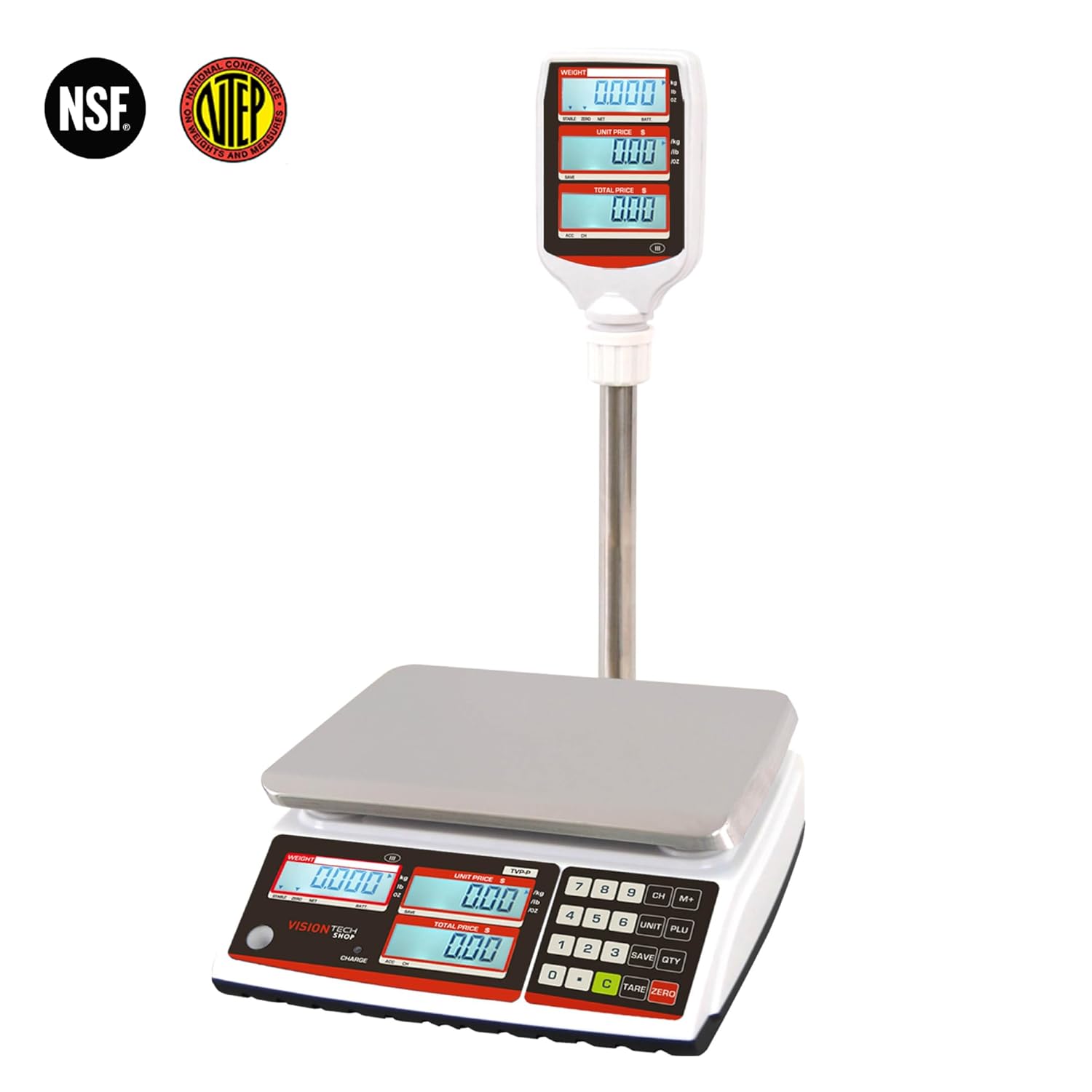 VisionTechShop TVP-12P Price Computing Scale with Pole Display, Lb/Oz/Kg, 12lb Capacity, 0.002lb Readability, NTEP Legal for Trade COC #19-038, NSF Certified
