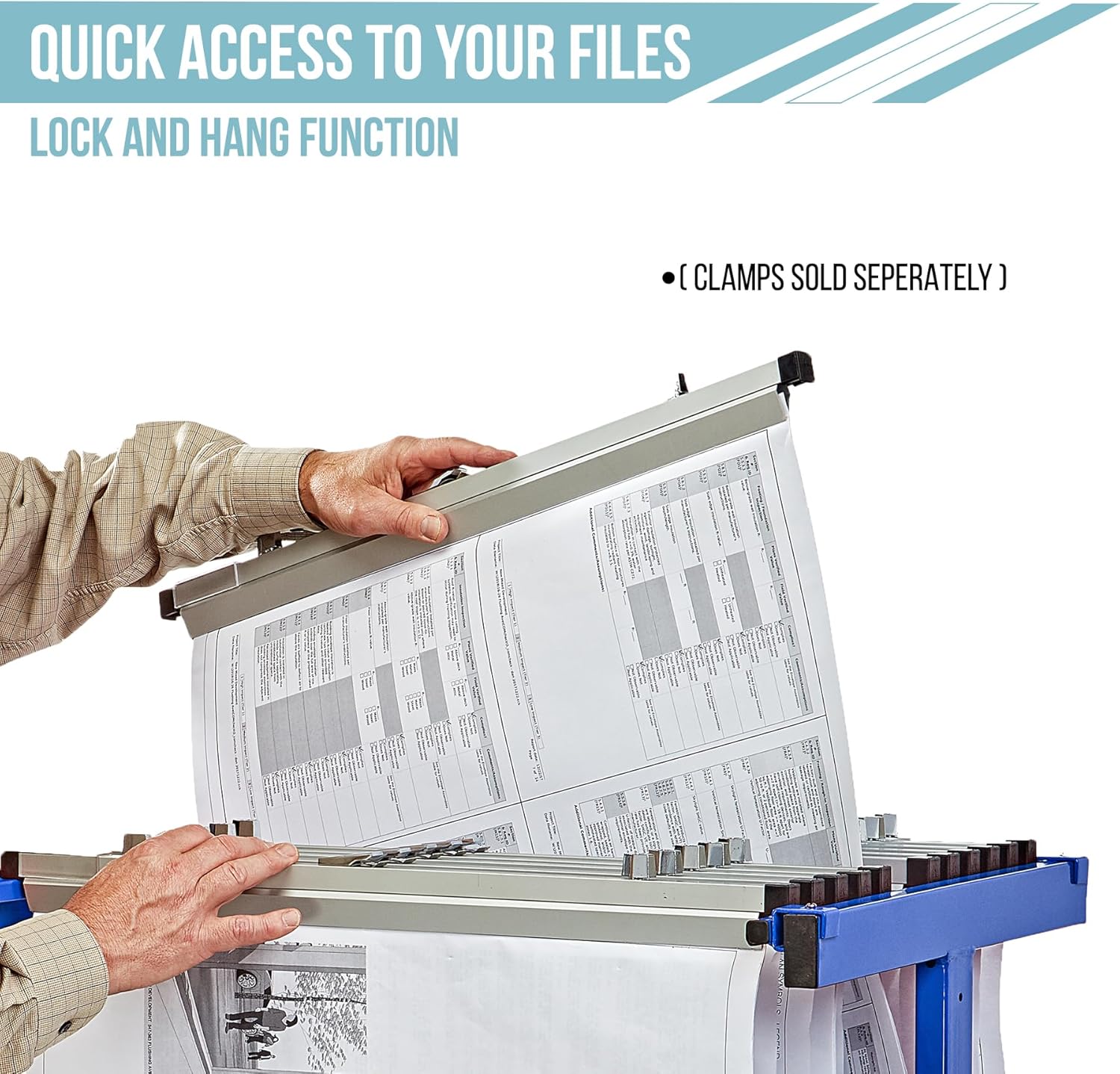- Sizes & Colors: AdirOffice blue print holder is available in 5 different colors – black, white, blue, red, and beige. This mobile drawing rack works with a 30", 36", and 42” file hanging clamps to suit your needs. (Clamps are sold separately from Adir Corp).