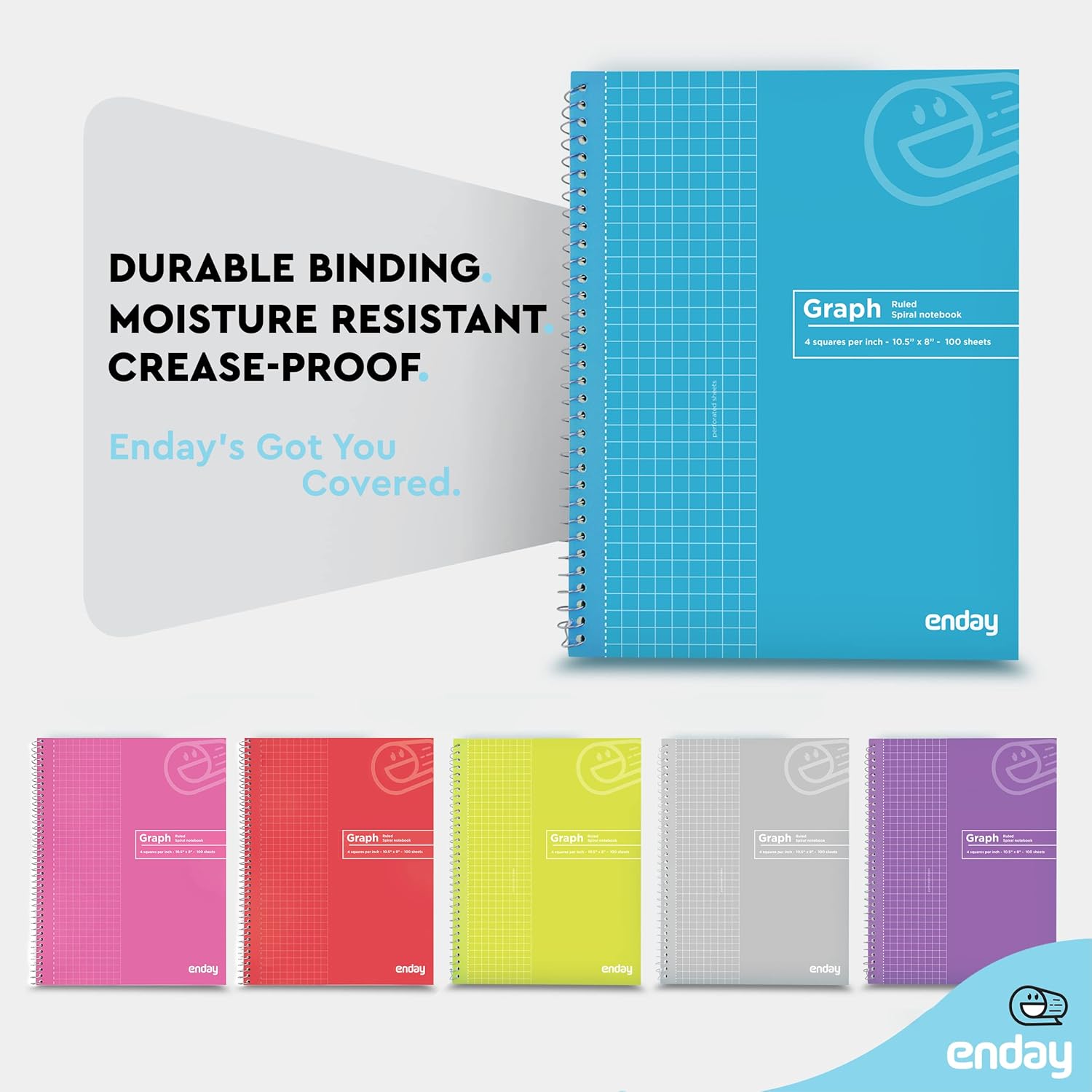 Graph Paper Notebook (8 Pack) Grid Notebook, Graph paper spiral notebook, Graph notebook, 4 Squares per inch Grid paper notebook, White Paper Quad Ruled Spiral Assorted Colors - by Enday