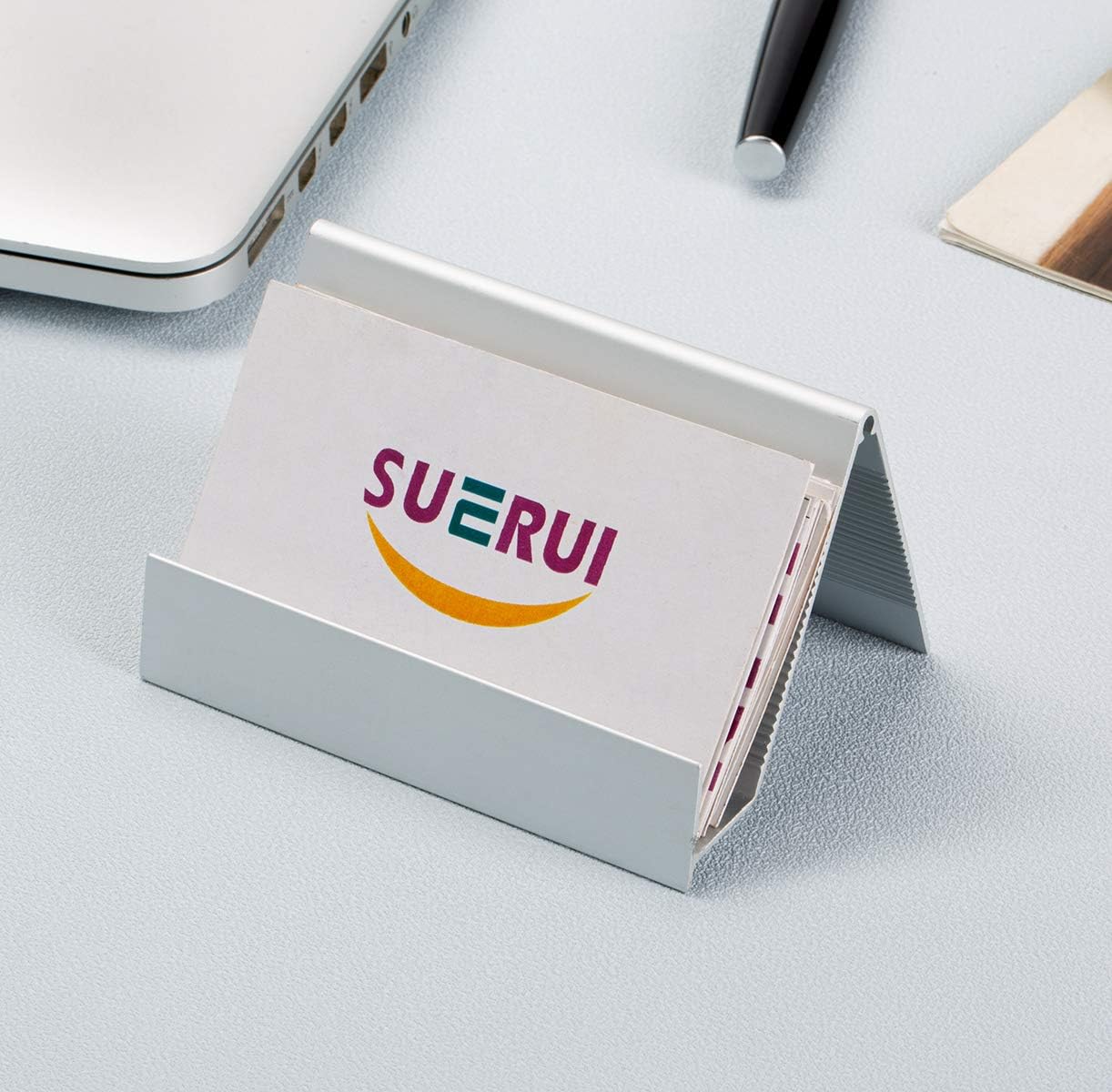 - Unique Design: Open-design holder stores up to 40 standard or non-standard size business cards or other universal cards on your desktop. Bottom heightening design to reduce friction. Professional business appearance, high-end new series.