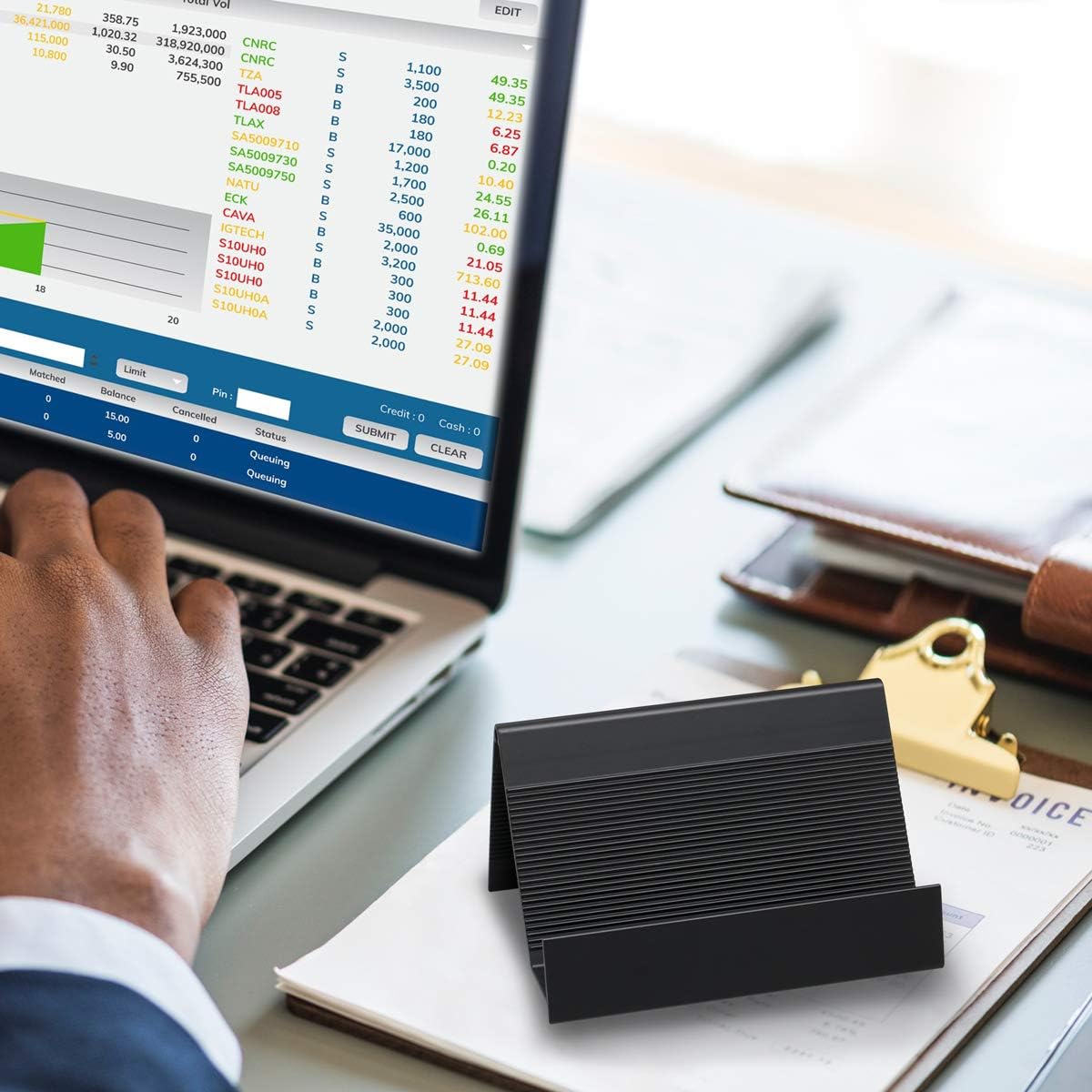 - Unique Design: Open-design holder stores up to 40 standard or non-standard size business cards or other universal cards on your desktop. Bottom heightening design to reduce friction. Professional business appearance, high-end new series.