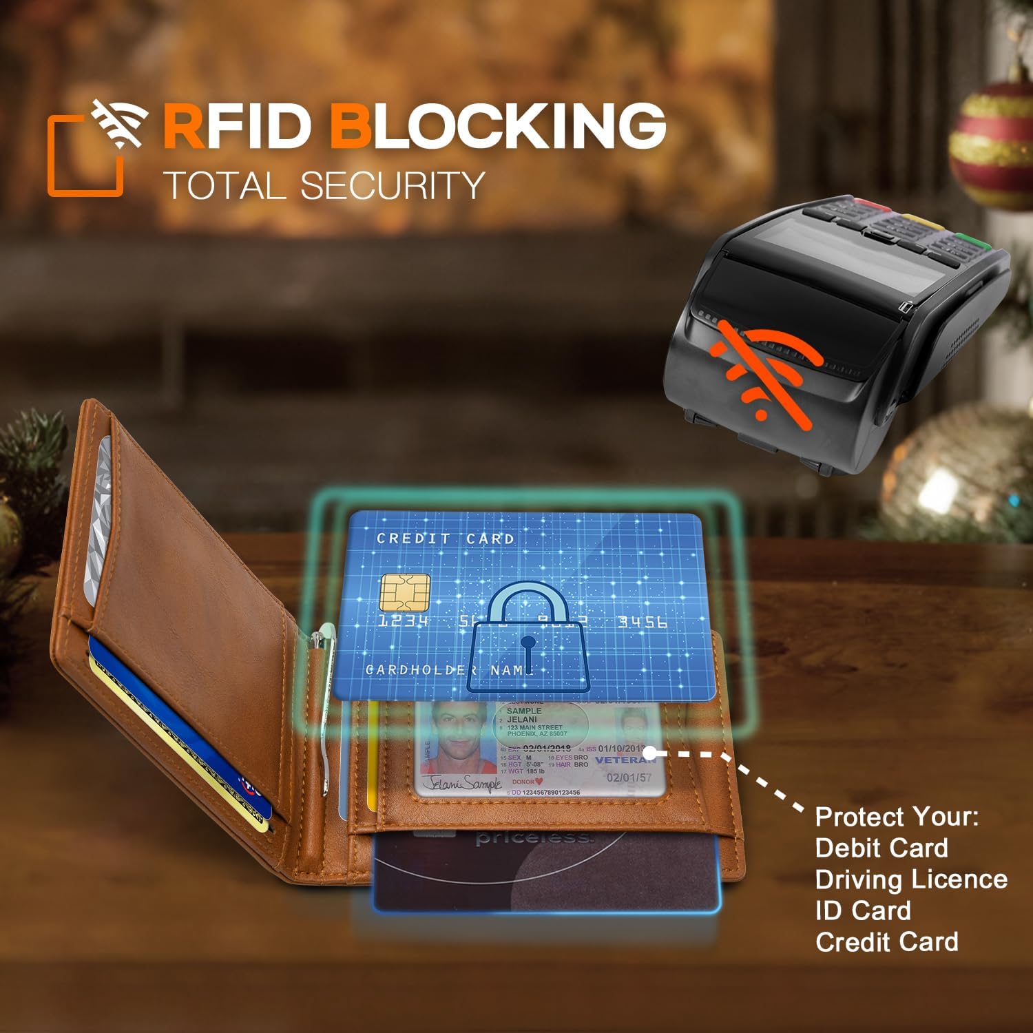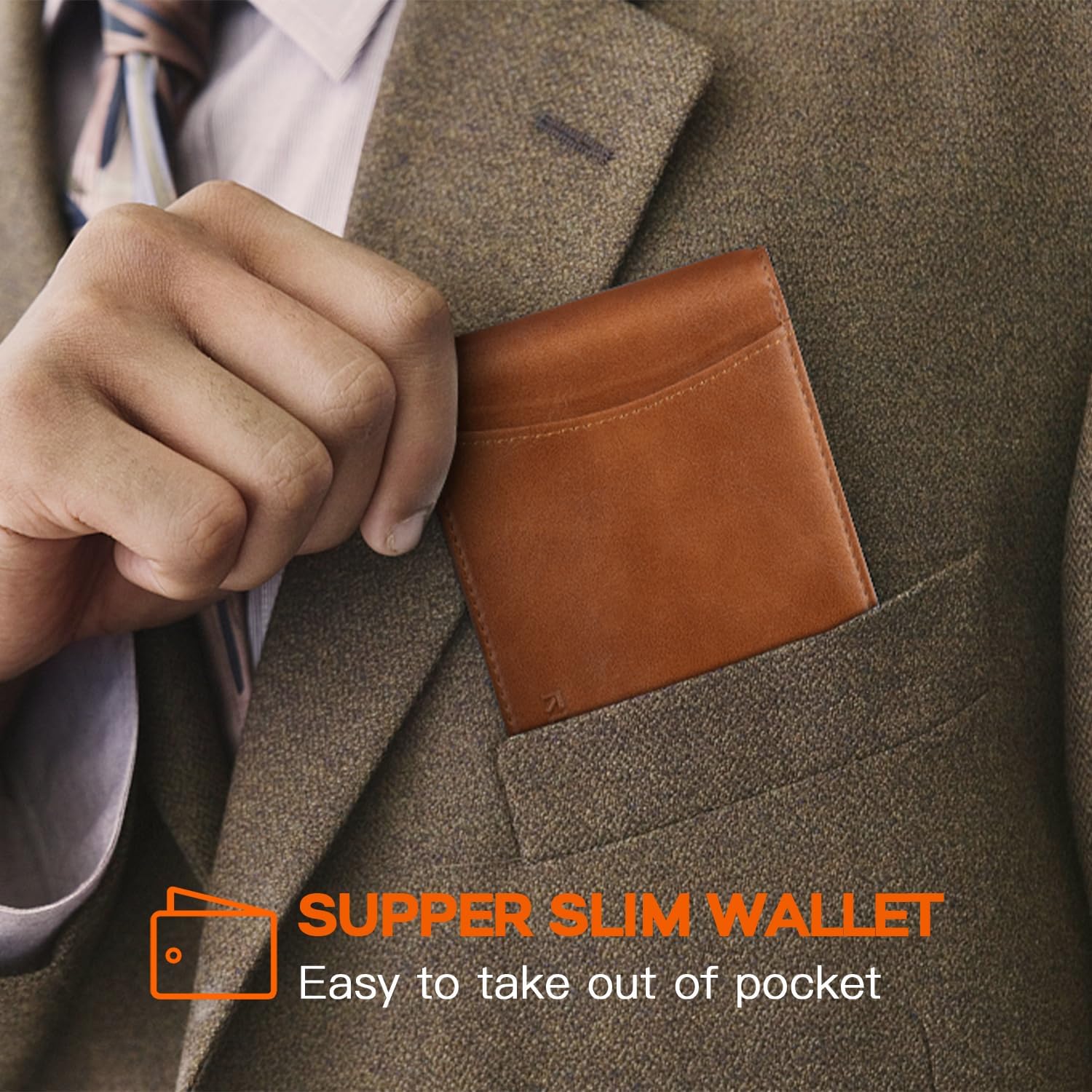 Slim Wallet for Men Genuine Leather RFID Blocking Bifold Minimalist Front Pocket Mens Wallet with Money Clip Thin Gift Box