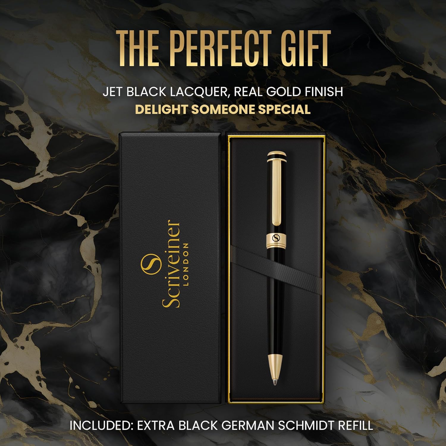 - Enjoy the feel of a true luxury pen in your hand – Stunning luxury ballpoint pen by Scriveiner. Brass with jet-black lacquer finished in real gold plating. Premium quality and understated luxury from a boutique British brand.