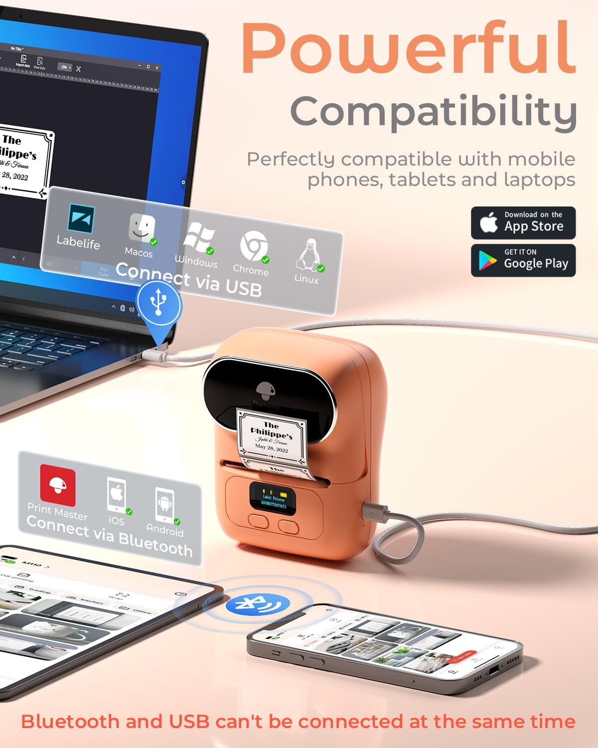 - Bluetooth Easy to Connect- Phomemo Bluetooth Label Printer with various App templates, mobile phone editing, you can choose the template according to your needs, and can set up the new size template. You can even leave a feedback on the App to tell us your needs