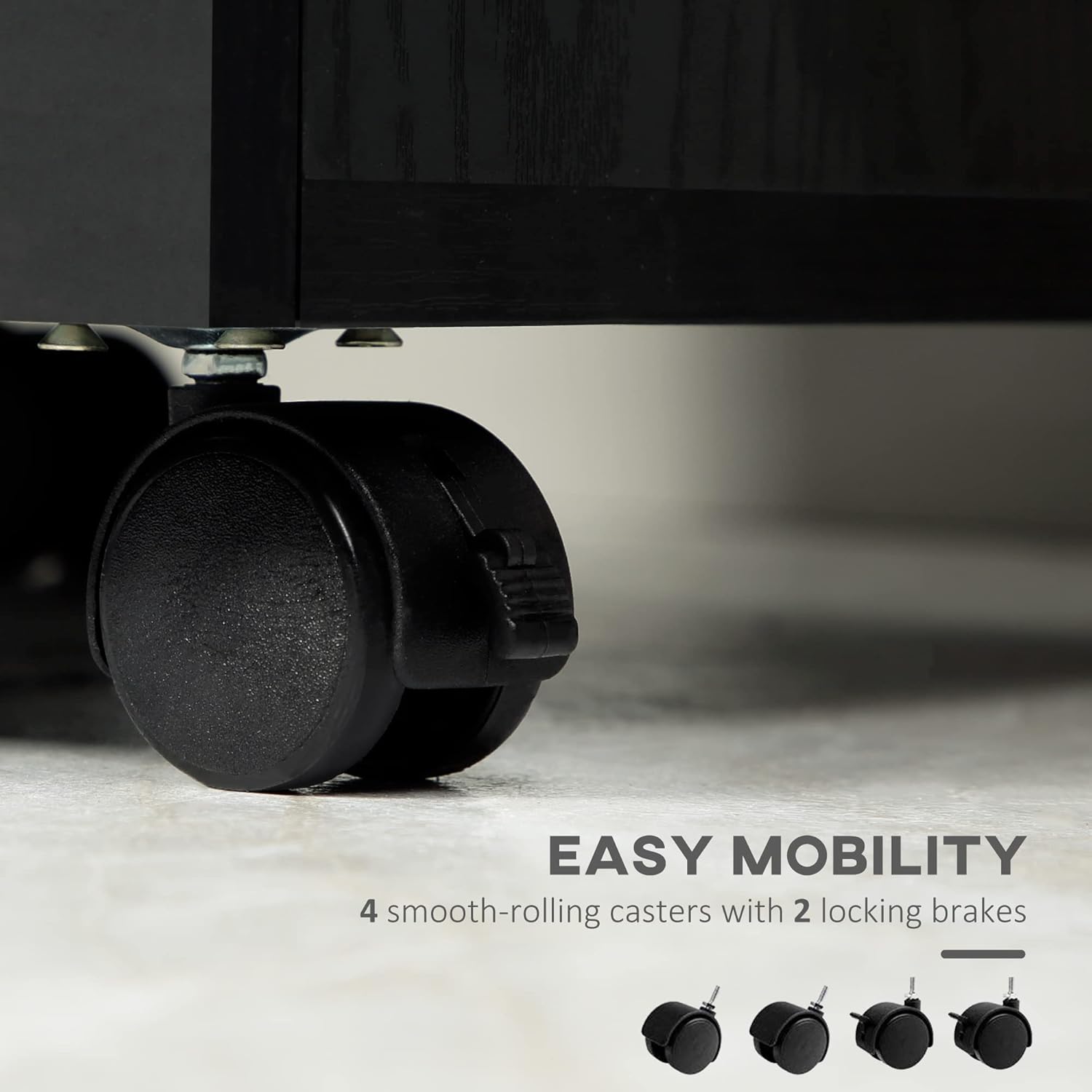 HOMCOM 3 Drawer Mobile File Cabinet, Rolling Printer Stand, Vertical Filing Cabinet, Black Wood Grain